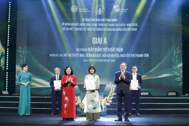 Ngày 5/12, tại Trung tâm Nghệ thuật Âu Cơ (Hà Nội) Lễ trao Giải báo chí toàn quốc về nông nghiệp, nông dân, nông thôn Việt Nam lần thứ III - năm 2025 và Thi viết tìm hiểu truyền thống 95 năm Hội Nông dân Việt Nam đã được tổ chức trang trọng, để lại nhiều ấn tượng sâu sắc.