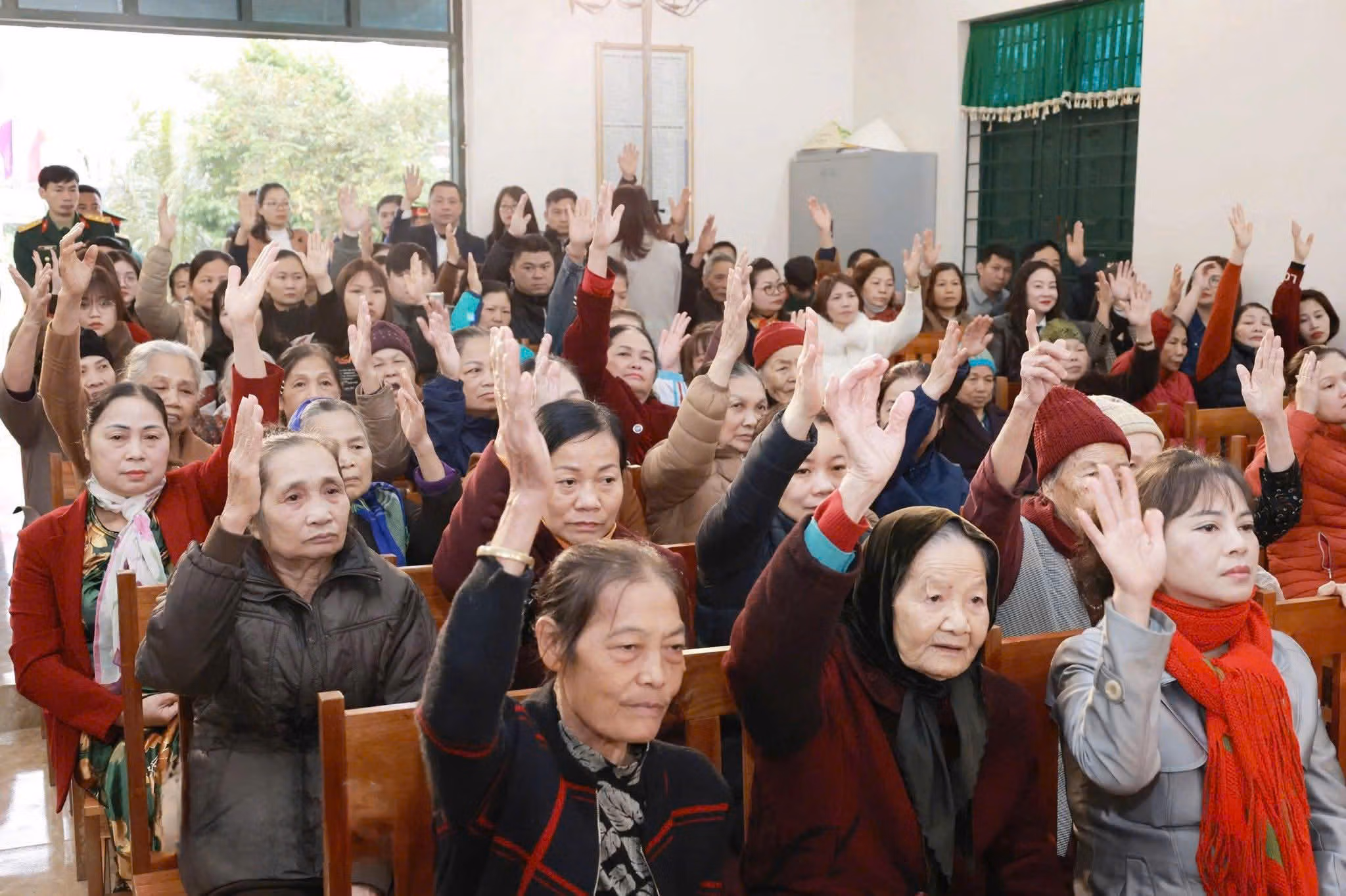 Kết quả sau quá trình thảo luận, 100% cử tri tham dự biểu quyết nhất trí giới thiệu người tham gia ứng cử đại biểu Quốc hội khóa XVI đối với Đại tướng Phan Văn Giang.