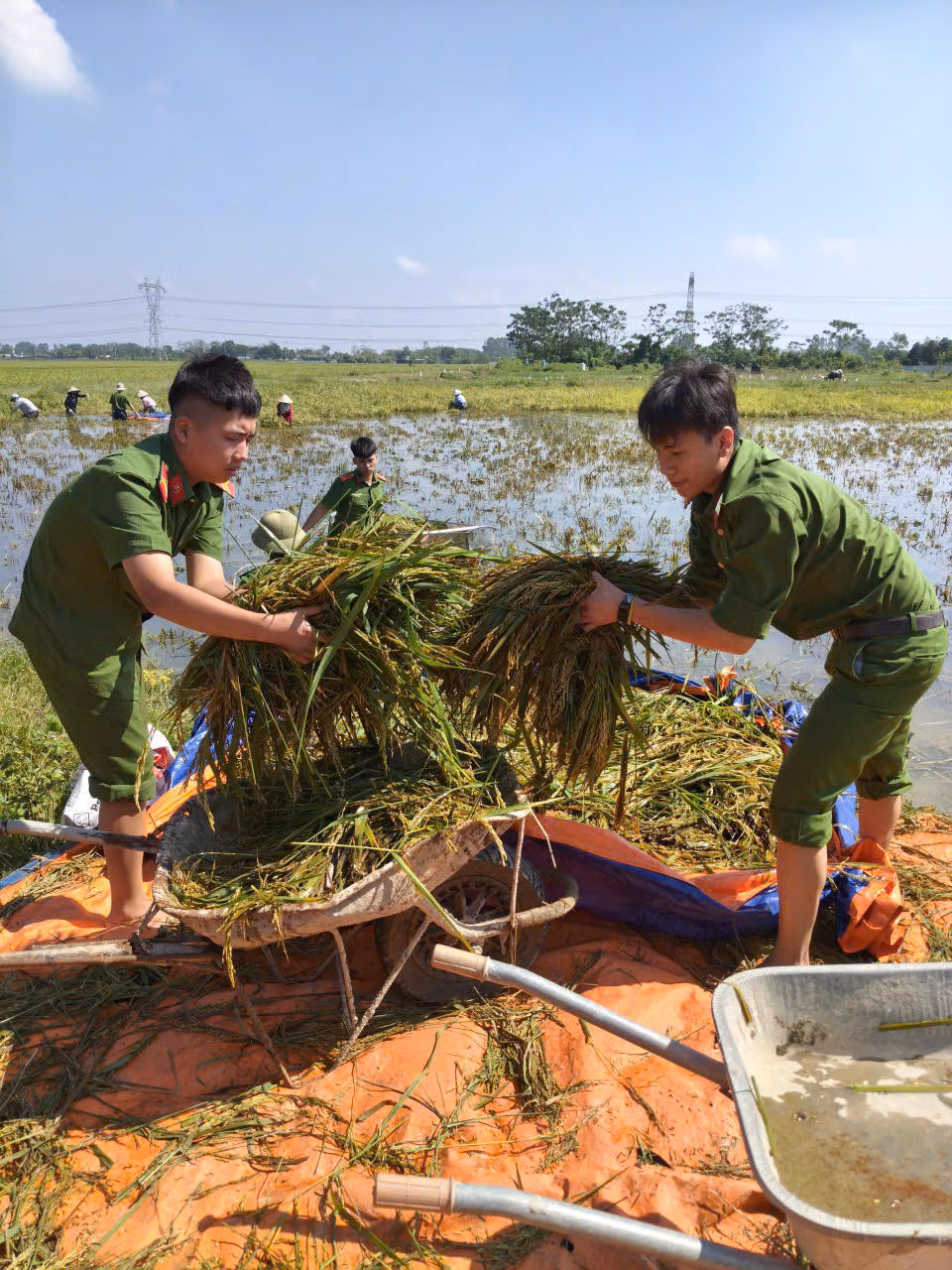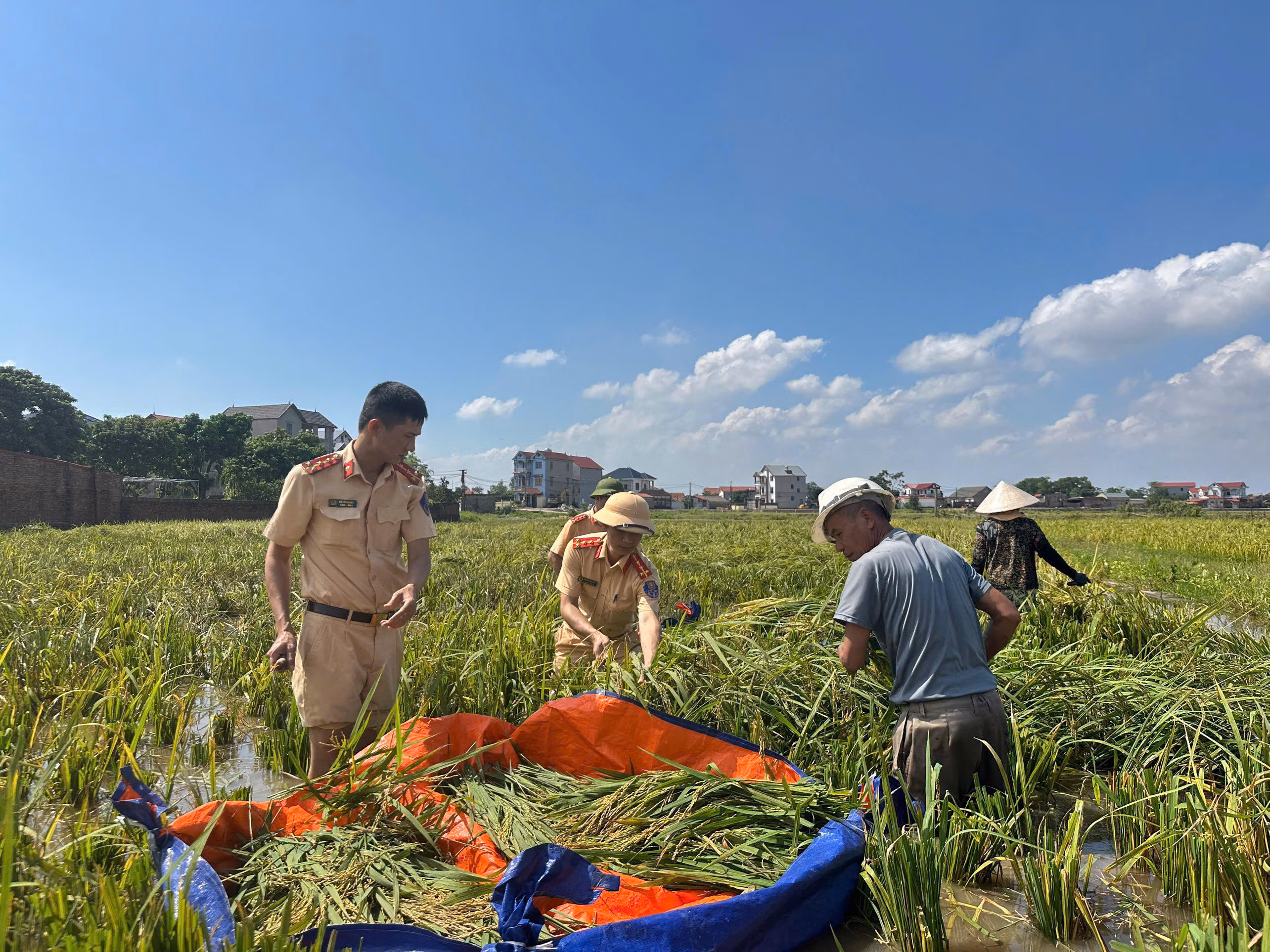 Công an Hà Nội tiếp tục huy động hơn 200 cán bộ chiến sĩ (CBCS) các đơn vị phối hợp với Công an xã Đa Phúc, Đoàn thanh niên xã Đa Phúc cùng nhân dân tổ chức dọn dẹp tại những khu vực nước vừa rút.