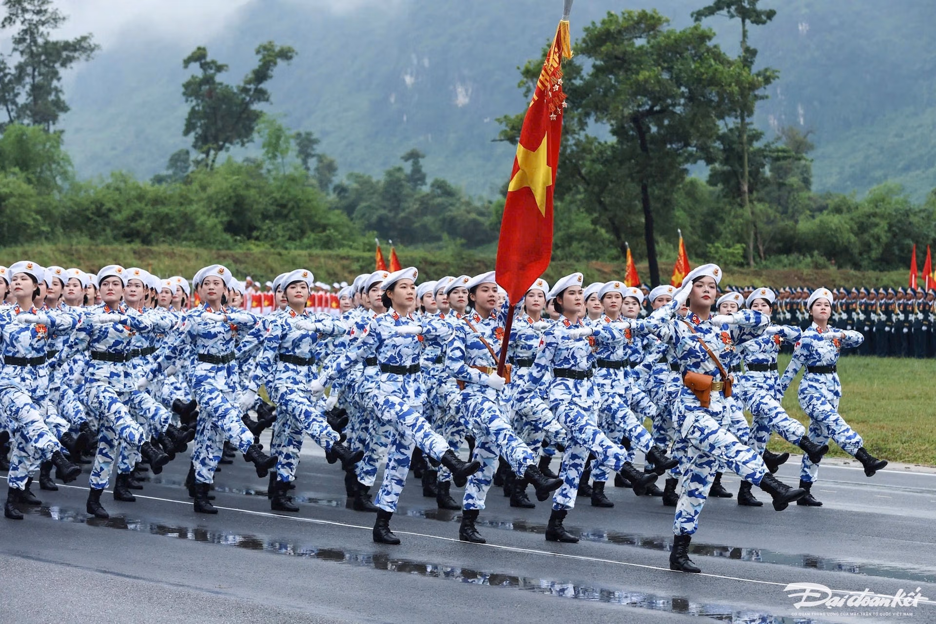 Khối cảnh sát cơ động, kỵ binh sau khi đi qua lễ đài, rẽ phải đi tuyến Lê Hồng Phong - Ngọc Hà, về vị trí tập kết tại Công viên Bách Thảo.