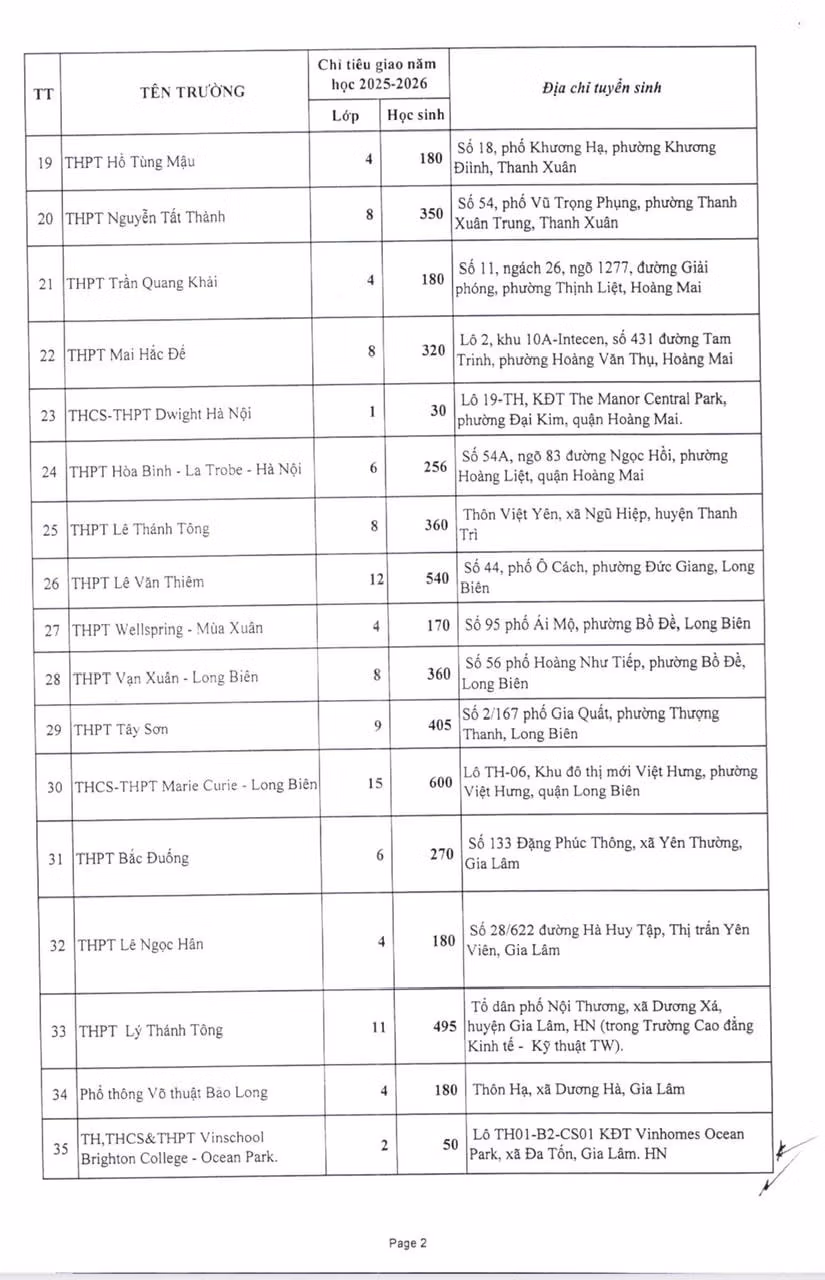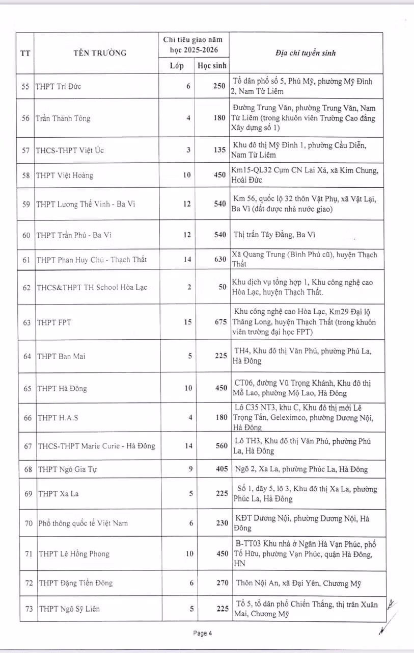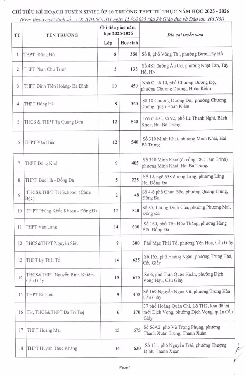 Chiều 16/4, Sở Giáo dục và Đào tạo Hà Nội công bố chỉ tiêu tuyển sinh lớp 10 năm học 2025-2026 của các trường THPT tư thục trên địa bàn thành phố.