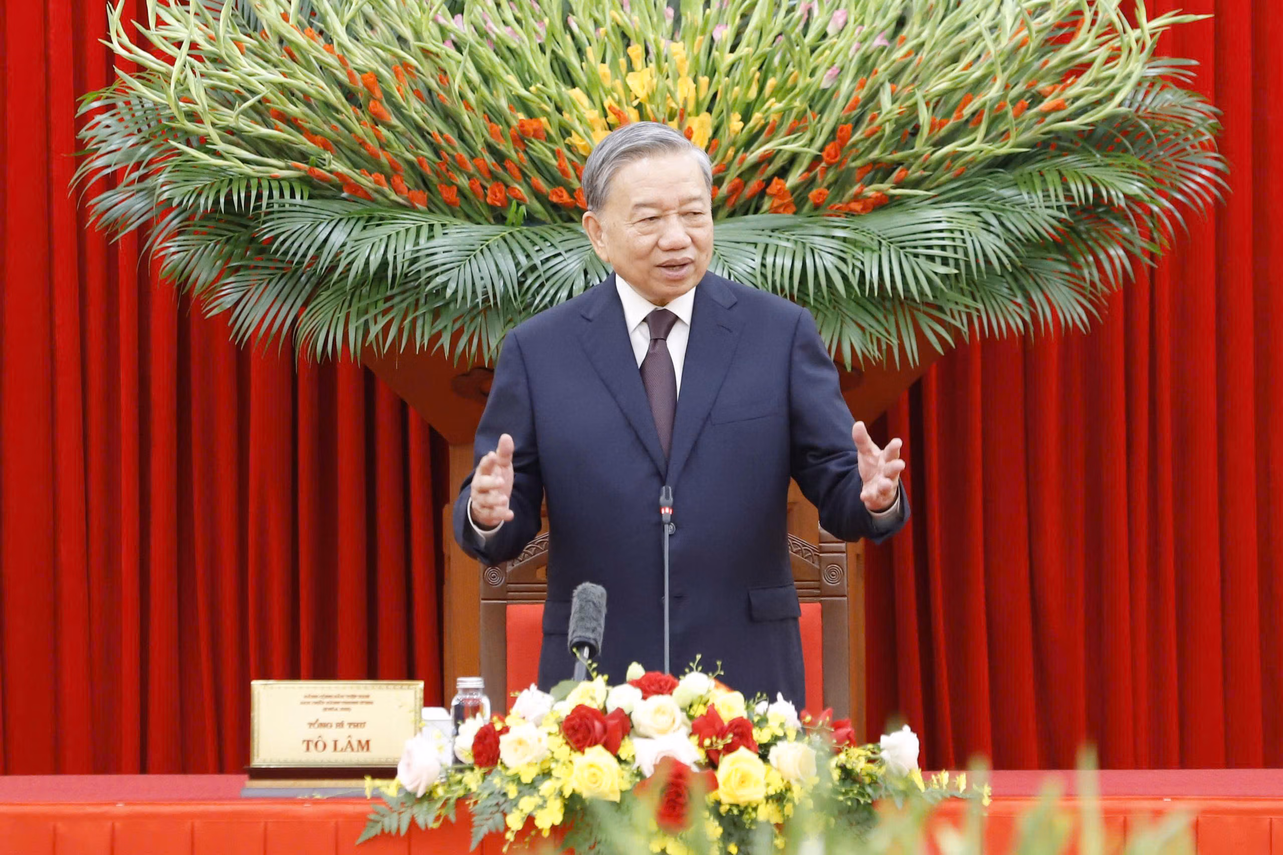 Tổng Bí thư Tô Lâm nhấn mạnh, Nghị quyết 19-NQ/TW của Trung ương về nông nghiệp, nông dân và nông thôn xác định: “Nông nghiệp là lợi thế quốc gia, là trụ đỡ của nền kinh tế”; trong những năm qua, dù tình hình có khó khăn đến đâu, nông nghiệp vẫn luôn đạt kết quả tích cực, là điểm tựa vững chắc cho những bước phát triển đột phá của đất nước. Đóng góp vào những thành tựu của nông nghiệp Việt Nam, Tổng Bí thư Tô Lâm đặc biệt đánh giá cao vai trò của giai cấp nông dân Việt Nam - những người đã làm nên kỳ tích trong thời kỳ đổi mới, góp phần thay đổi vận mệnh quốc gia từ thiếu đói kéo dài thành bảo đảm an ninh lương thực, rồi tiến lên xuất khẩu nông sản đứng đầu thế giới ở nhiều mặt hàng.
