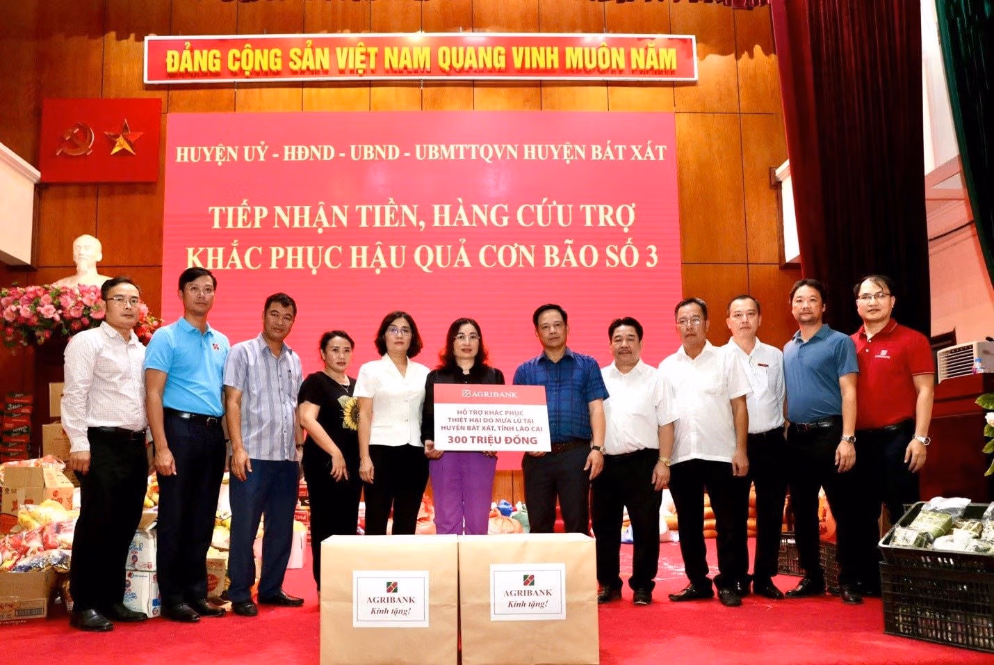 Mặc dù hoạt động của nhiều Chi nhánh, Phòng giao dịch của Agribank cũng bị ảnh hưởng, thiệt hại cơ sở vật chất bởi bão và mưa, lũ nhưng phát huy vai trò trách nhiệm của doanh nghiệp đối với cộng đồng, Agribank triển khai nhiều hoạt động ý nghĩa, đồng hành cùng các địa phương và người dân vượt qua khó khăn, sớm ổn định cuộc sống. Tại Lễ phát động ủng hộ của Ủy ban Trung ương Mặt trận Tổ quốc Việt Nam, Agribank ủng hộ 02 tỷ đồng, cùng ngành Ngân hàng hỗ trợ đồng bào bị thiệt hại do bão số 3. Đến ngày 12/9/2024, toàn hệ thống Agribank đã ủng hộ hơn 17 tỷ đồng hỗ trợ công tác khắc phục hậu quả cơn bão.