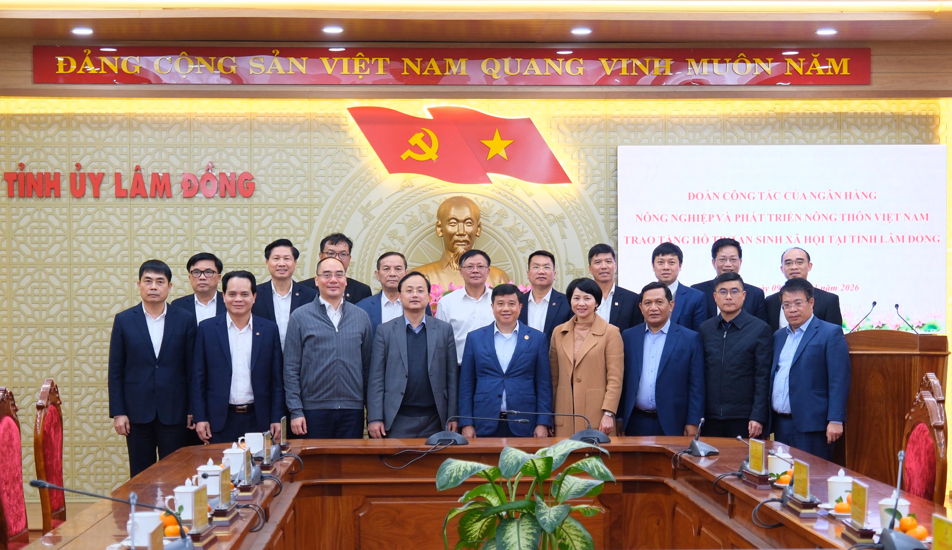 Chiều ngày 9/1, ông Tô Huy Vũ - Bí thư Đảng ủy, Chủ tịch Hội đồng thành viên Ngân hàng Nông nghiệp và Phát triển nông thôn Việt Nam (Agribank) dẫn đầu Đoàn công tác đã đến thăm và trao tặng 5 tỷ đồng hỗ trợ an sinh xã hội góp phần chung tay cùng tỉnh Lâm Đồng trong công tác xây dựng nông thôn mới, chăm lo đời sống Nhân dân.