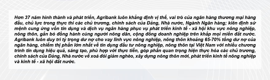 Trong số các doanh nghiệp tham gia tích cực trong phòng trào xóa nhà tạm, nhà dột nát, Agribank nổi lên với vai trò tiên phong trong công tác an sinh xã hội. Suốt chiều dài hơn 37 năm xây dựng và phát triển, gắn bó mật thiết với người dân nói chung, nông dân nói riêng, Agribank thấu hiểu được sự khó khăn của họ. Agribank cũng hiểu được trách nhiệm của mình trong vấn đề an sinh xã hội, mái ấm cho người nghèo, không ai bị bỏ lại phía sau.