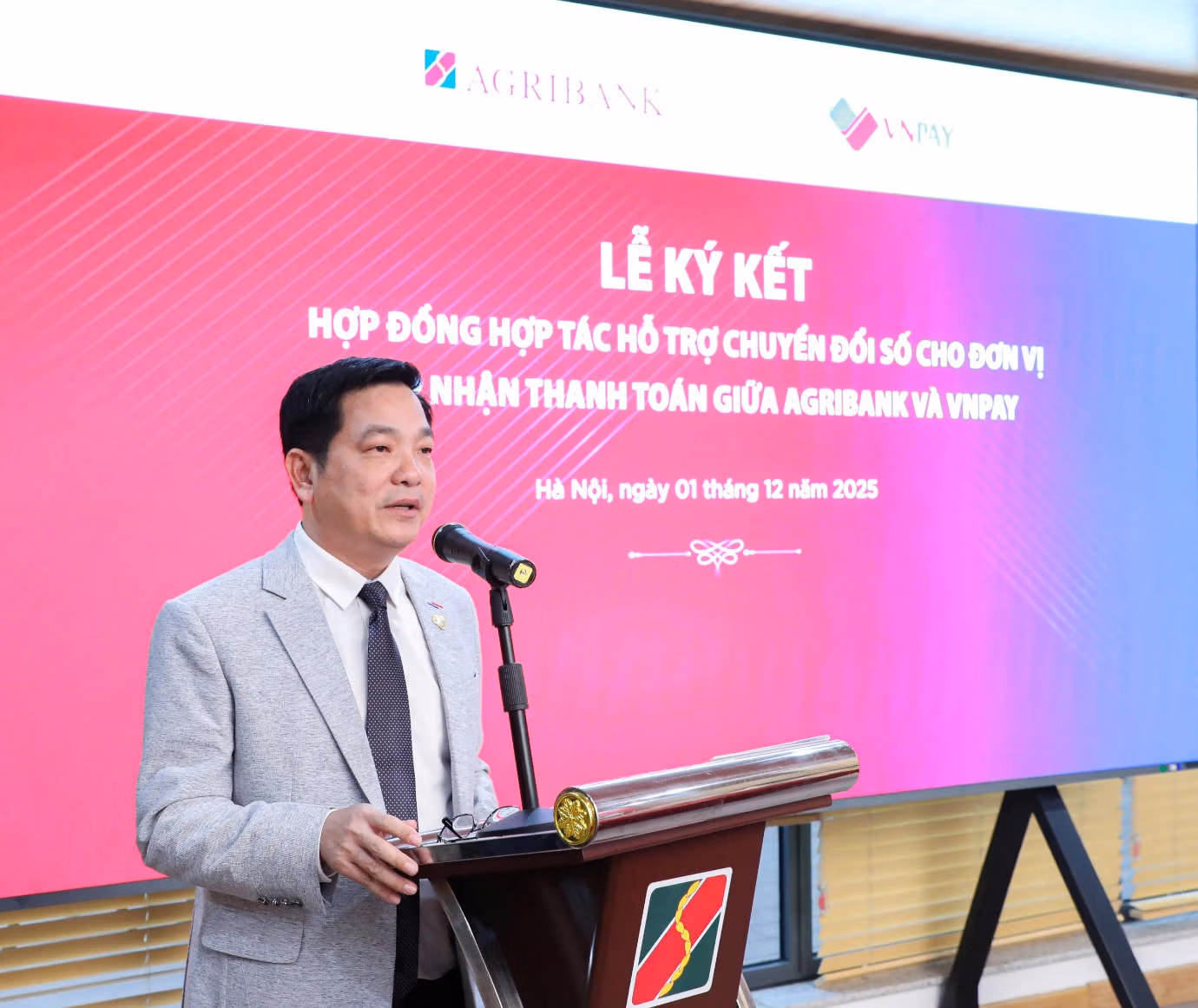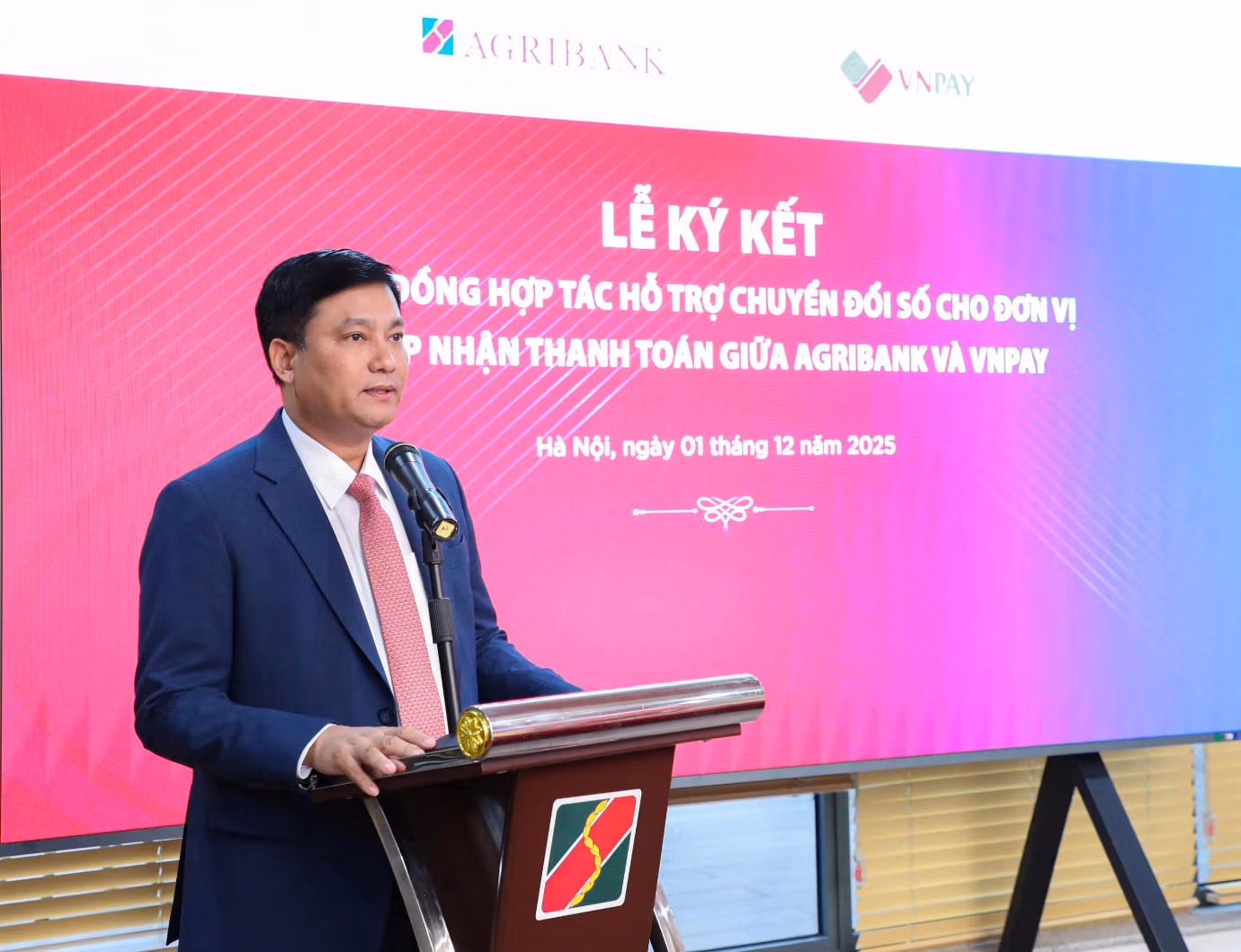 Chiều ngày 1/12, tại Trụ sở chính Agribank, Ngân hàng Nông nghiệp và Phát triển nông thôn Việt Nam (Agribank) và Công ty Cổ phần Giải pháp Thanh toán Việt Nam (VNPAY) đã chính thức ký kết hợp đồng hợp tác triển khai gói giải pháp chuyển đổi số dành riêng cho hộ kinh doanh và doanh nghiệp nhỏ.