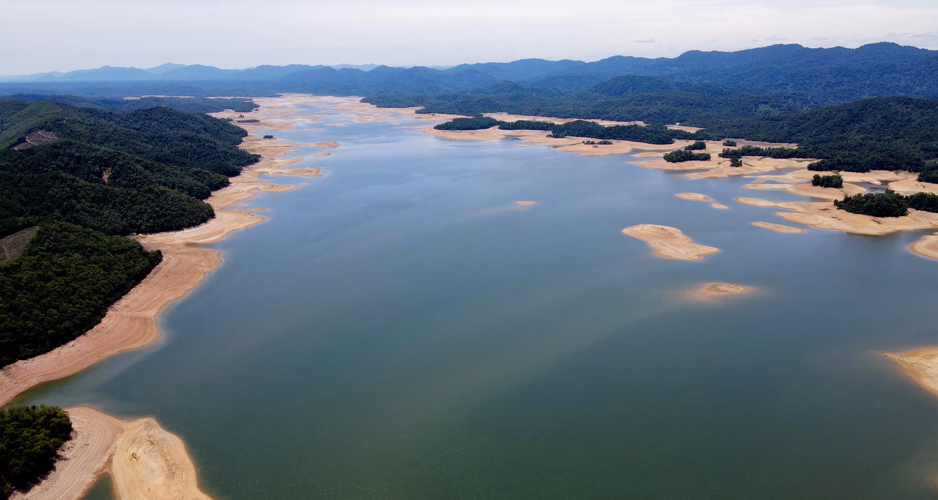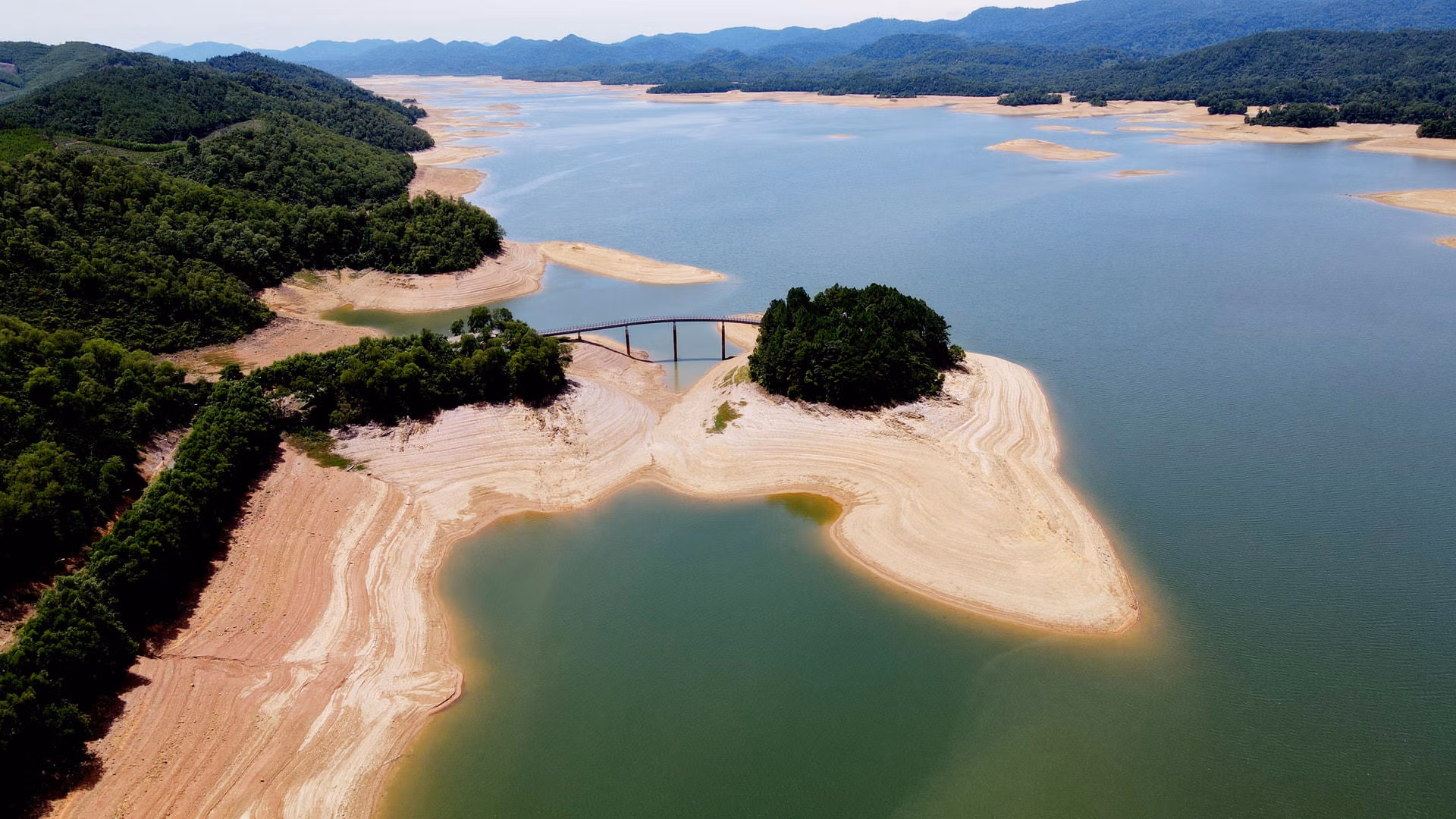 [Ảnh] Cận cảnh hồ Kẻ Gỗ cạn trơ đáy, nguy cơ xuống mực nước chết