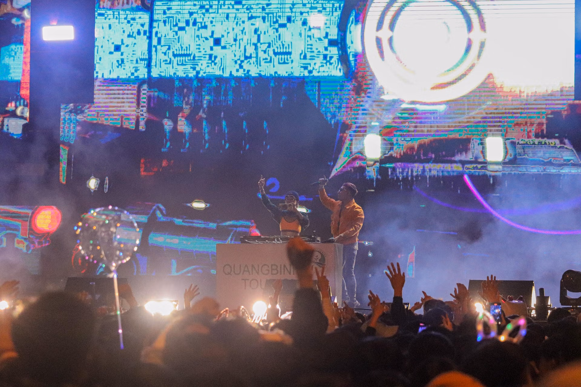 [Ảnh] Hàng vạn người chào đón năm mới Phong Nha Countdown Party 2023 Chủ Nhật 01/01/2023 11:24 (GMT+7) Hàng vạn du khách và người dân địa phương cùng hoà mình vào không khí chờ đợi thời khắc đếm ngược chào đón năm mới Xuân Quý Mão năm 2023. Theo đó, Sở Du lịch Quảng Bình đã phối hợp với các đơn vị liên quan tổ chức chương trình Countdown Party 2023 từ 20 giờ ngày 31.12.2022 đến 2 giờ ngày 1.1.2023 với hàng loạt chương trình hấp dẫn.Bất chấp điều kiện thời tiết rét lạnh, hàng vạn người dân và du khách cùng nhau tưng bừng trong đại tiệc âm thanh, ánh sáng chào đón Xuân Quý Mão 2023.Ông Nguyễn Ngọc Quý - Giám đốc Sở Du lịc tỉnh Quảng Bình chúc mừng năm mới người dân và du khách đến với Countdown Party 2023 cùng khán giả đang theo dõi truyền hình.Chương trình có sự tham dự của các ca sĩ nổi tiếng như: ca sĩ Đan Trường, ca sĩ Vicky Nhung, ca sĩ Trung Quang, DJ Oxy, DJ Suger cùng âm thanh sôi động khiến các bạn trẻ hò hét, nhún nhảy theo những điệu nhạc.Thời tiết lạnh cũng không ngăn nổi sức "nóng" từ các khán giả đang cháy hết mình với những tiết mục sôi động trên sân khấu.Càng khuya, không khí càng náo nhiệt hơn khi có sự xuất hiện của ca sĩ Vicky Nhung cùng ca sĩ Đan Trường với những bản nhạc EDM khuấy động sân khấu khiến giới trẻ phấn khích chờ đợi thời khắc đầu tiên của năm 2023.Ai ai cũng háo hức mong chờ tới thời khắc chia tay năm cũ và chào đón năm mới 2023.Nhiều địa điểm nổi tiếng ở Quảng Bình được phát trong đêm Countdown Party 2023.Chương trình bắn pháo hoa được thực hiện từ 0 giờ đến 0 giờ 15 phút.Phong Nha Countdown Party 2023 là chương trình văn hóa, du lịch chào đón năm mới thường niên dành cho khách du lịch và người dân Quảng Bình và các tỉnh lân cận được tổ chức tại thị trấn Phong Nha (huyện Bố Trạch, tỉnh Quảng Bình), trung tâm của di sản thiên nhiên thế giới Phong Nha – Kẻ Bàng nhằm tạo ra sự kiện thường kỳ với những hoạt động sôi nổi, hấp dẫn, thu hút nhiều khách du lịch trong và ngoài nước đến với Quảng BìnhNhằm mục đích kích cầu du lịch trong năm mới 2023, tỉnh Quảng Bình còn tổ chức nhiều sự kiện quảng bá, xúc tiến du lịch khác như: Sự kiện chào đón đoàn khách du lịch đầu tiên năm 2023 đến Quảng Bình tại Cảng hàng không Đồng Hới vào ngày 1-1-2023; Chương trình chào đón đoàn khách đầu tiên đến Di sản thiên nhiên thế giới Phong Nha-Kẻ Bàng; Hội thi ẩm thực du lịch Quảng Bình… Đăng Khôi