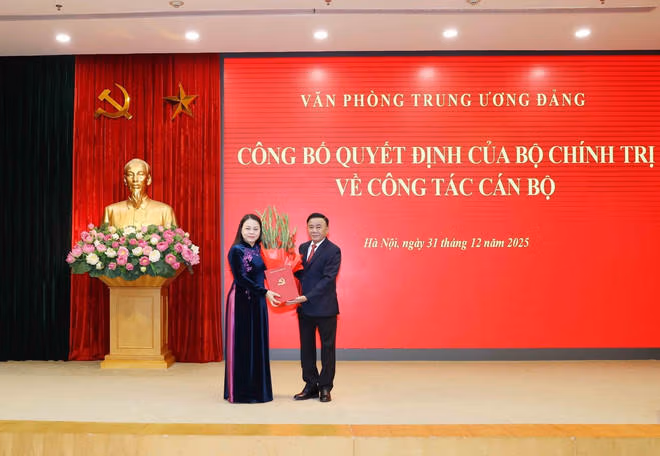 Trao Quyết định và tặng hoa chúc mừng đồng chí Nguyễn Thị Thu Hà nhận trọng trách mới, thay mặt Bộ Chính trị, đồng chí Thường trực Ban Bí thư Trần Cẩm Tú cho biết ngày 30/12/2025, Bộ Chính trị đã có quyết định điều định, phân công và bổ nhiệm đồng chí Lâm Thị Phương Thanh, Ủy viên Trung ương Đảng, Phó Chánh Văn phòng Thường trực Văn phòng Trung ương Đảng giữ chức Thứ trưởng Thường trực Bộ Văn hóa, Thể thao và Du lịch; điều động, phân công và bổ nhiệm đồng chí Nguyễn Thị Thu Hà, Ủy viên Trung ương Đảng, Phó Chủ tịch - Tổng Thư ký Uỷ ban Trung ương Mặt trận Tổ quốc Việt Nam giữ chức vụ Phó Chánh Văn phòng Thường trực Văn phòng Trung ương Đảng.