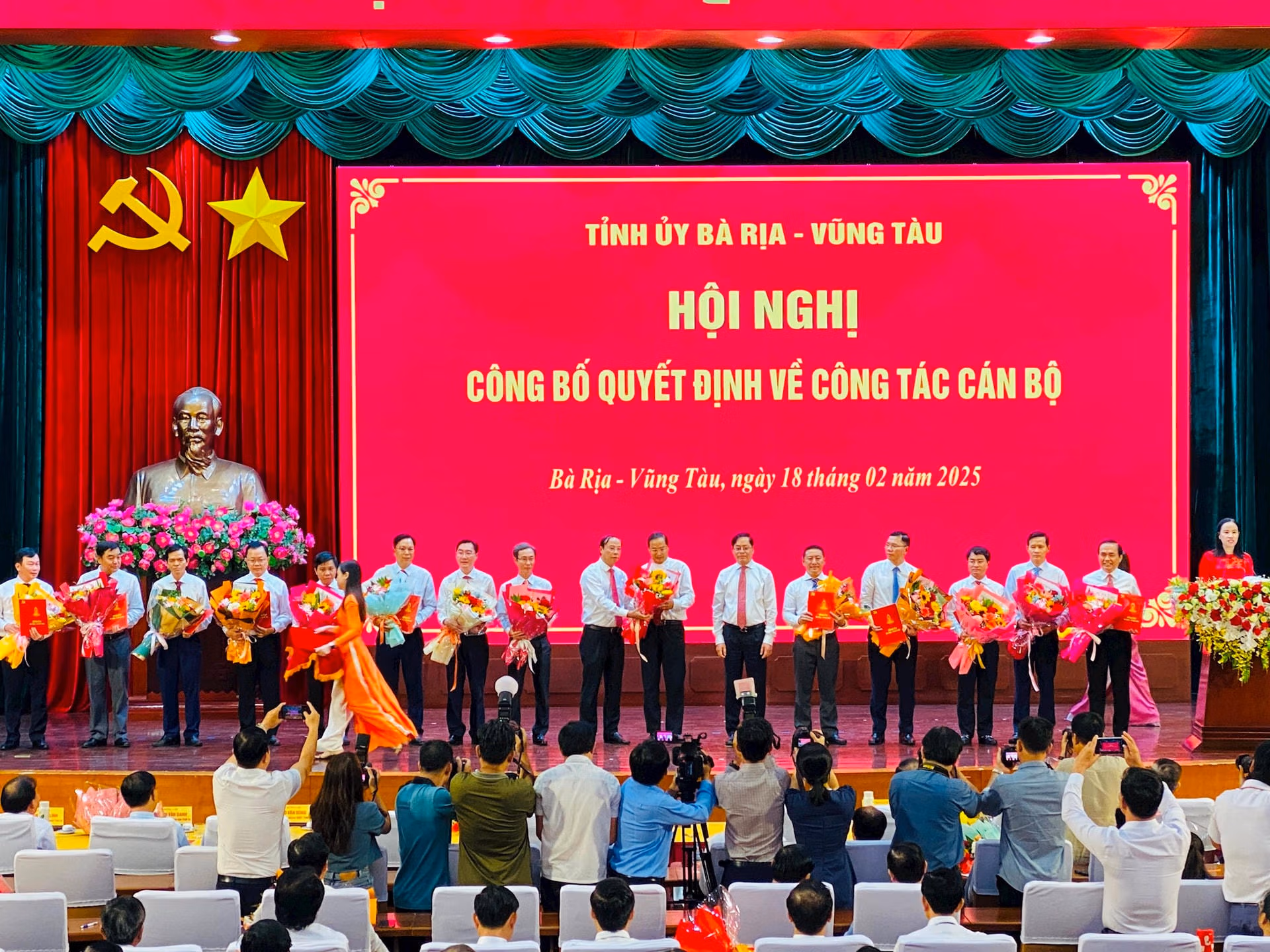 Ngày 18/2, Tỉnh ủy Bà Rịa - Vũng Tàu tổ chức Hội nghị công bố 20 quyết định về công tác cán bộ ở các vị trí quan trọng thuộc diện quản lý của Ban Thường vụ Tỉnh ủy.