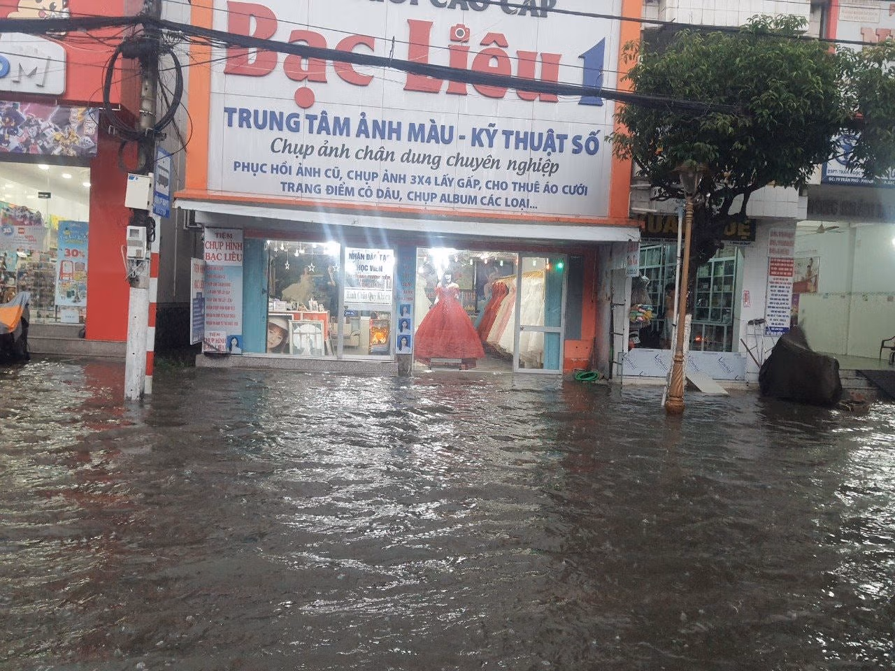 Anh Trần Trí Diện, một tiểu thương ở thành phố Bạc Liêu cho biết, cả ngày nay trời u ám, đến chiều cơn mưa rất nặng hạt, chỉ sau khoảng hơn 20 phút là nước đã dâng lên ngập nhiều tuyến phố, nhưng ngập nặng nhất là đường Trần Phú, đường Hòa Bình.