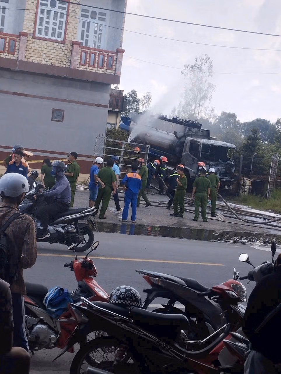 Ngay khi nhận được tin báo, các lực lượng chức năng nhanh chóng có mặt tại hiện trường chữa cháy. Tại hiện trường, xe bồn cháy dữ dội, hư hỏng nặng, hàng trăm người dân hiếu kỳ tập trung gần cây xăng.
