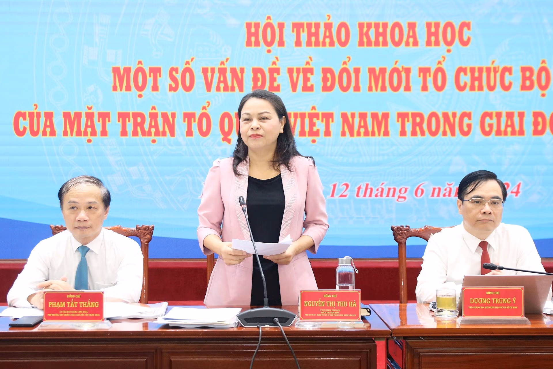 Phó Chủ tịch - Tổng Thư ký Nguyễn Thị Thu Hà cho rằng, cơ sở pháp lý, căn cứ chính trị về hoạt động của MTTQ Việt Nam đã cơ bản đầy đủ, bởi vậy, việc đổi mới tổ chức bộ máy của MTTQ Việt Nam các cấp là nội dung quan trọng trong nhiệm kỳ mới.