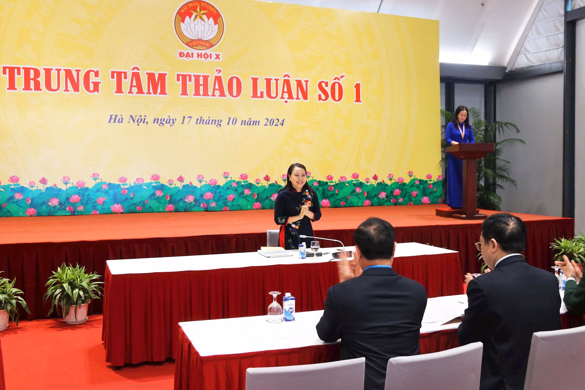 Tiếp tục chương trình làm việc Đại hội đại biểu toàn quốc MTTQ Việt Nam lần thứ X, nhiệm kỳ 2024 – 2029, chiều 17/10, tại Trung tâm Thảo luận số 1, dưới sự chủ trì của Ủy viên Trung ương Đảng, Phó Chủ tịch - Tổng Thư ký UBTƯ MTTQ Việt Nam Nguyễn Thị Thu Hà, các đại biểu đã tham gia thảo luận, đóng góp nhiều ý kiến tâm huyết, trách nhiệm vào các nội dung của Đại hội.