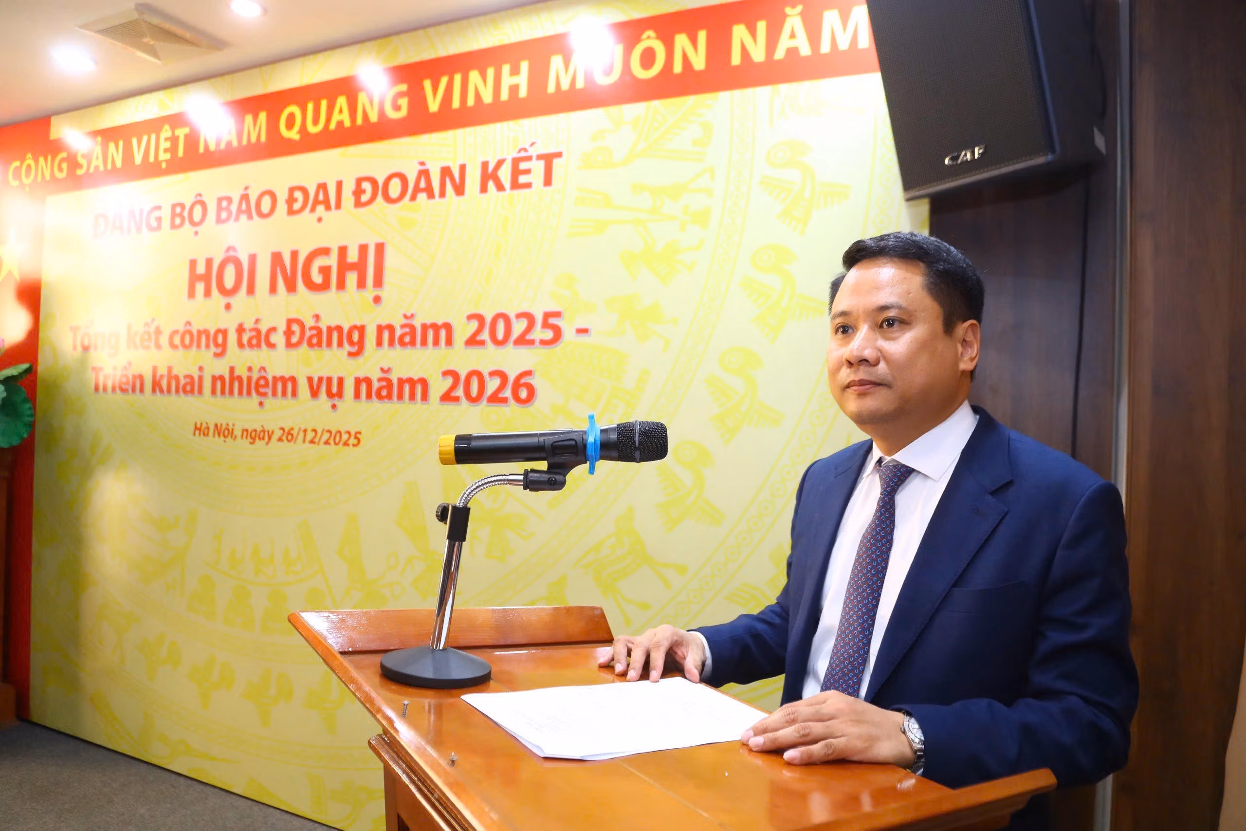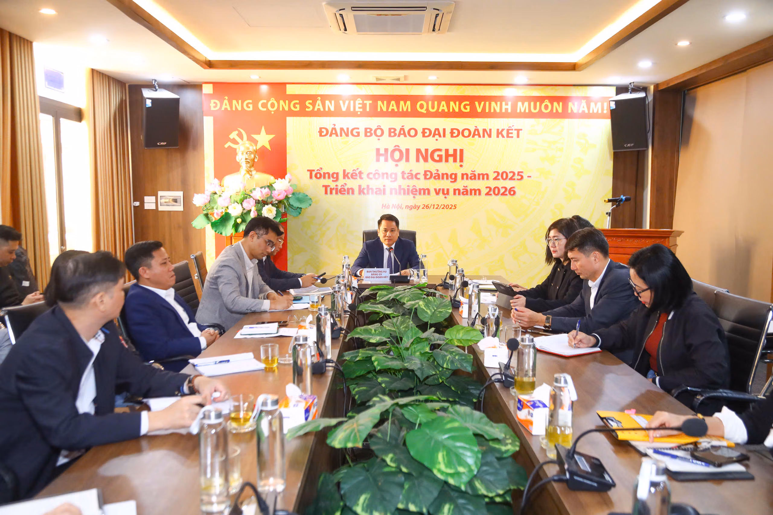 Ngày 26/12, tại Hà Nội, Đảng bộ Báo Đại đoàn kết tổ chức Hội nghị tổng kết công tác Đảng năm 2025, phương hướng, nhiệm vụ và giải pháp trọng tâm năm 2026. Đồng chí Trương Thành Trung, Ủy viên Ban Chấp hành Đảng bộ cơ quan Ủy ban Trung ương MTTQ Việt Nam, Bí thư Đảng ủy, Tổng Biên tập Báo Đại đoàn kết chủ trì hội nghị. Hội nghị được tổ chức theo hình thức trực tiếp kết hợp trực tuyến, với sự tham dự của toàn thể đảng viên Đảng bộ tại hội trường và các điểm cầu.