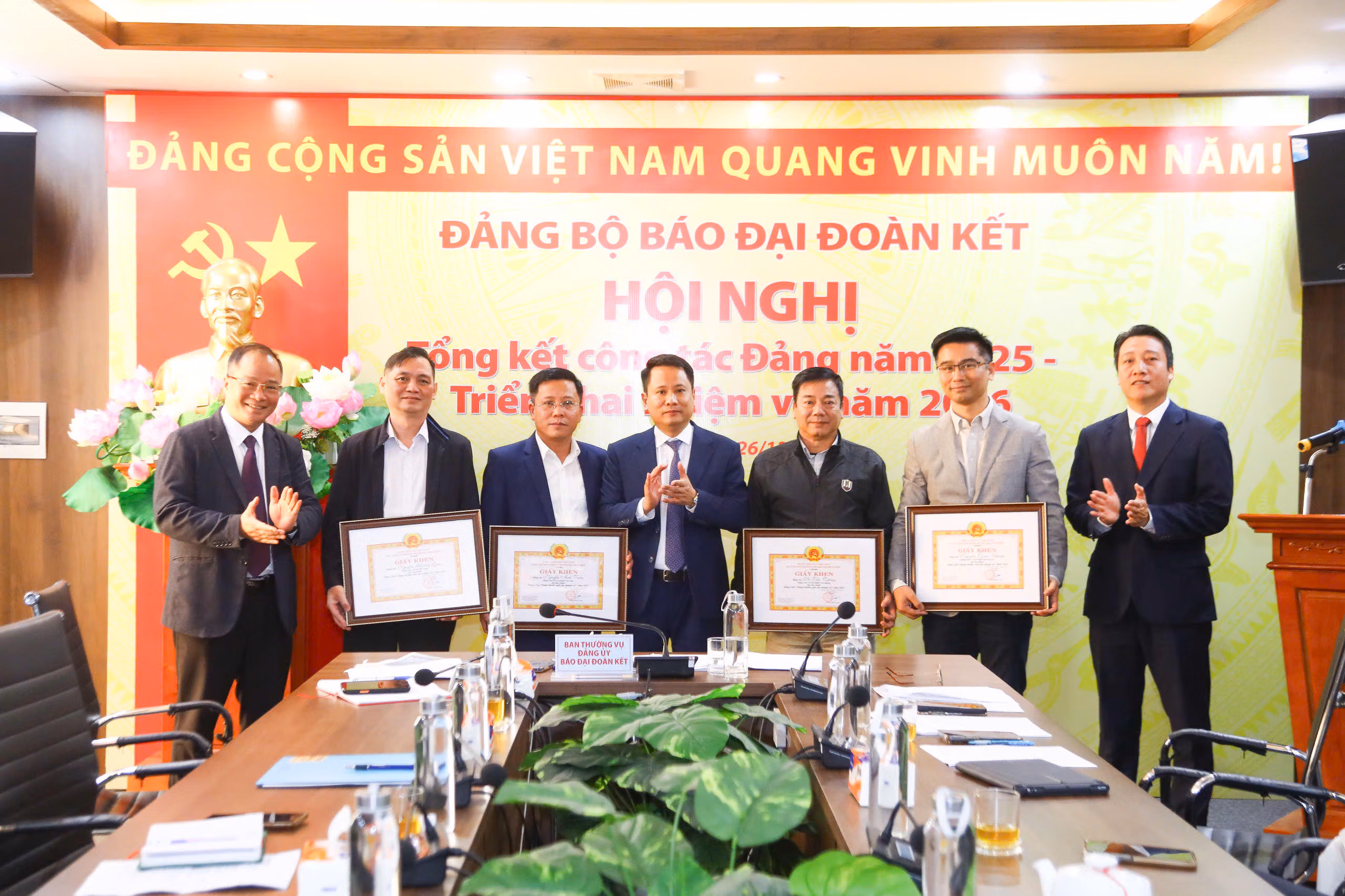 Tại hội nghị, Đảng ủy Báo Đại đoàn kết đã biểu dương và trao Giấy khen cho các cá nhân có thành tích xuất sắc trong công tác Đảng năm 2025, gồm: Vũ Tiến Cường (Chi bộ Khối Văn phòng), Nguyễn Hoàng Quân (Chi bộ Nội chính), Hồ Xuân Hoàng (Chi bộ Khối Tòa soạn), Nguyễn Anh Tuấn (Chi bộ Khối Tòa soạn), Nguyễn Công Khanh (Chi bộ Khối Nội dung số) và Trần Quốc Trung (Chi bộ Khối các văn phòng đại diện phía Nam).