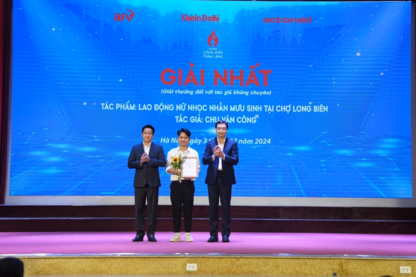 Sau 2 vòng chung khảo và sơ khảo, đối với sân thi chuyên nghiệp, Ban Giám khảo cuộc thi “Những cống hiến thầm lặng” năm 2024 đã lựa chọn được 22 tác phẩm chất lượng, đáp ứng những yêu cầu của cuộc thi vào vòng chung khảo để trao giải cho 12 tác giả/nhóm tác giả (1 giải Nhất, 1 giải Nhì, 3 giải Ba, 10 giải Khuyến khích). Giải nhất là tác phẩm “Giải pháp thu hút lao động làng nghề vào lưới an sinh thông qua chính sách bảo hiểm xã hội” của Nhà báo Lê Thị Lan Hương, Báo Đại Đoàn kết. Ngoài ra, Ban tổ chức trao giải thưởng phụ cho 10 giải các tác phẩm lọt vào vòng chung khảo.