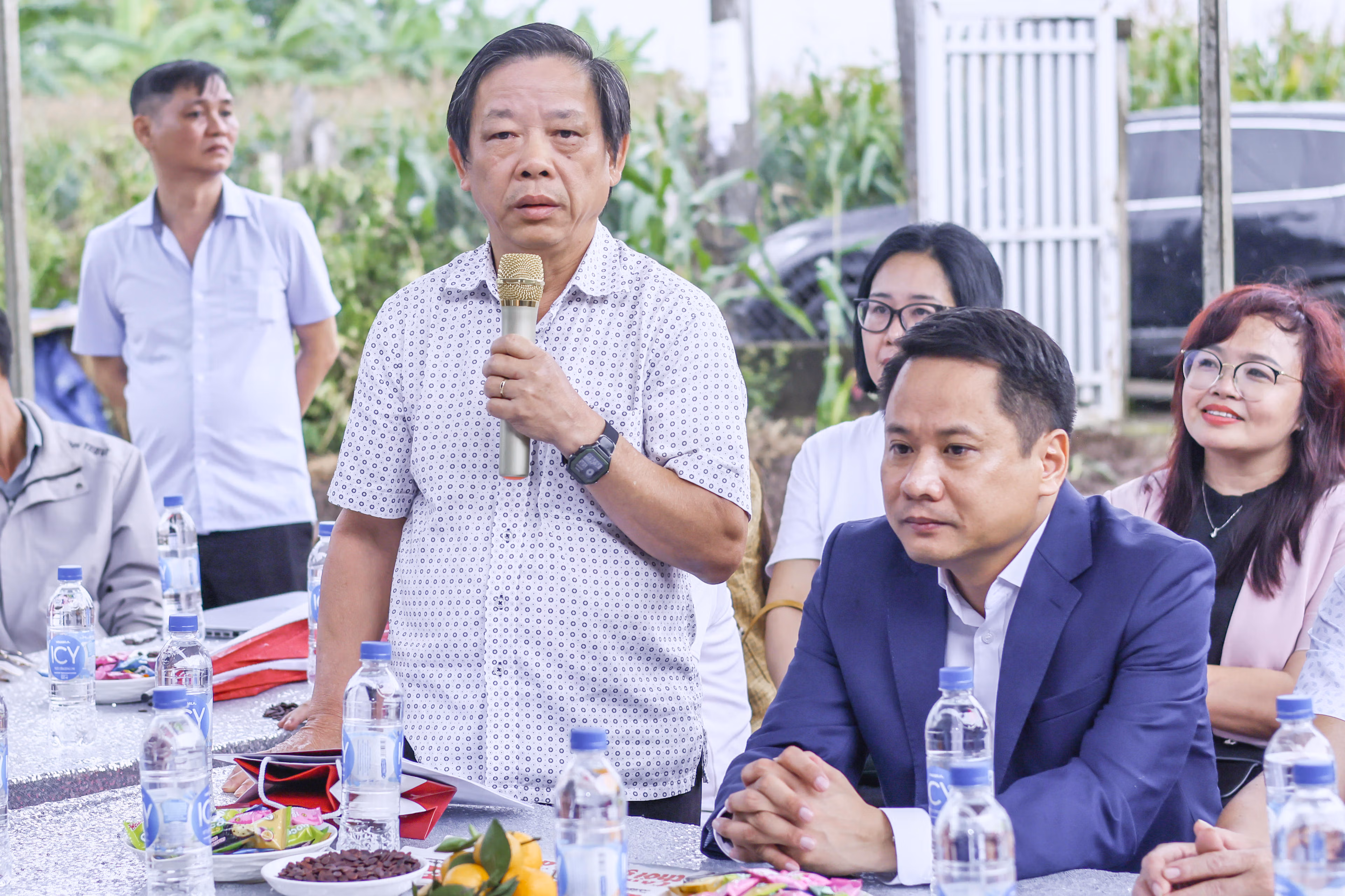 Tại buổi lễ, ông Phạm Xuân Cam, Phó Giám đốc Ngân hàng Agribank chi nhánh Bắc Đắk Lắk bày tỏ niềm vinh dự khi tham gia cùng với Báo Đại đoàn kết, chính quyền xã Ea Nuôl dự lễ khởi công, trao tặng nhà Đại đoàn kết cho hộ gia đình bà Lê Thị Hà.