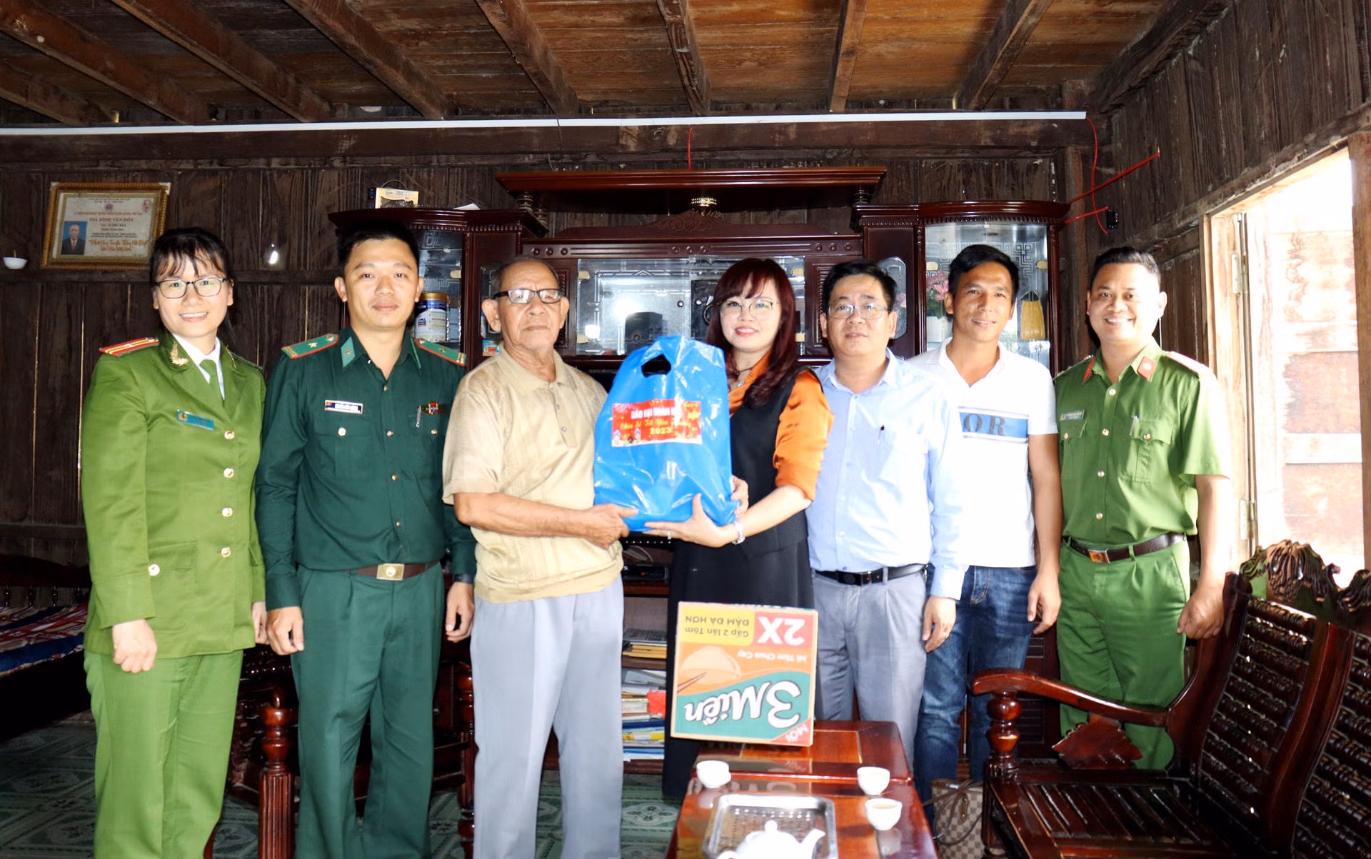 Tại buổi đến thăm, tặng quà, đại diện Báo Đại Đoàn Kết, đại diện Đồn Biên phòng Sê Rê Pốk, chính quyền địa phương, các mạnh thường quân đã đến thăm gia đình ông Y Thư Byă, nguyên cán bộ công tác Mặt trận xã Krông Na (thời kỳ 1999 - 2006).