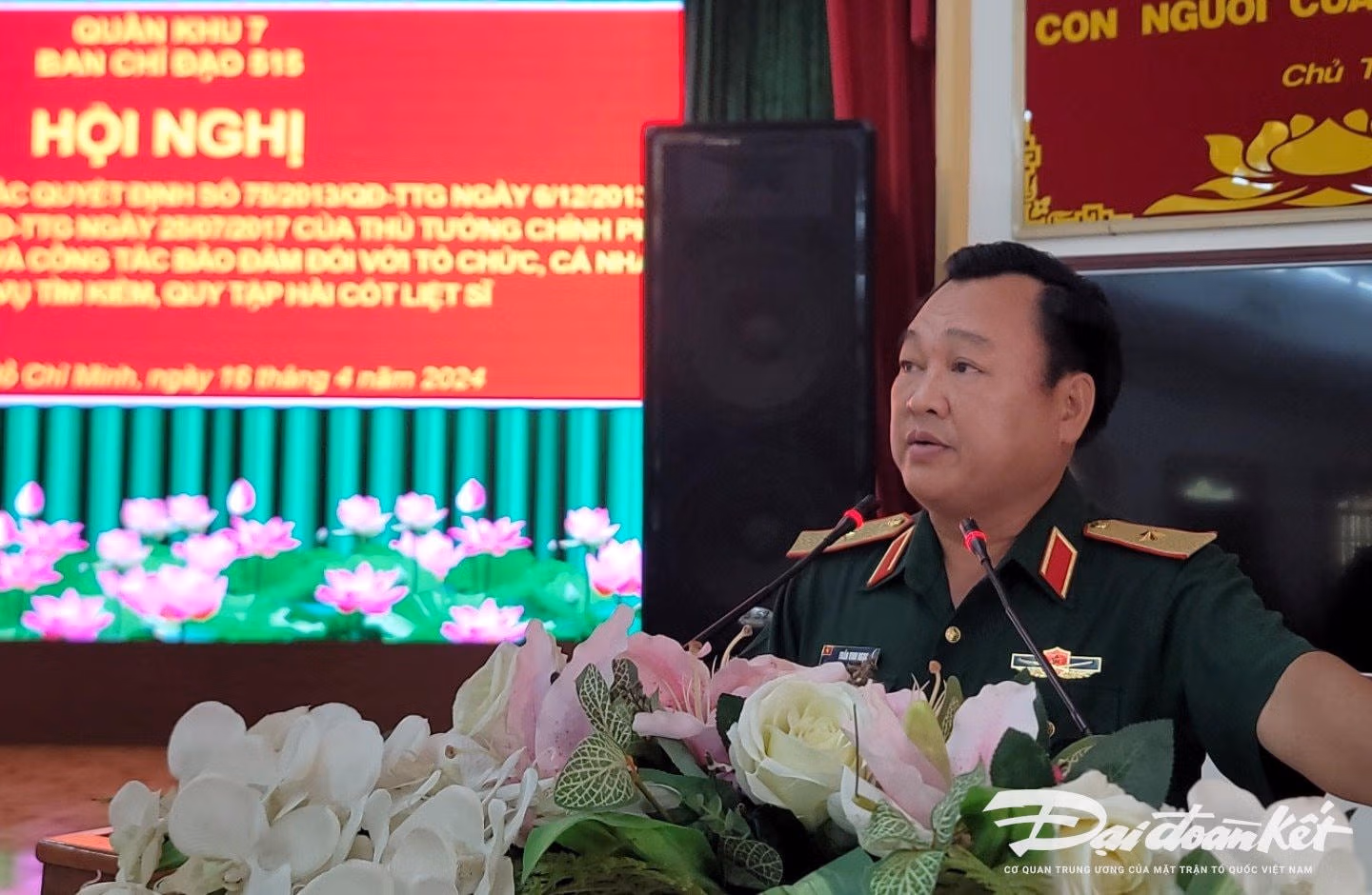 Tại Hội nghị, Thiếu tướng Trần Vinh Ngọc, Phó Chính ủy Quân khu 7, Trưởng Ban chỉ đạo 515 Quân khu 7 cho biết, thực hiện các Quyết định của Thủ tướng Chính phủ, Ban Chỉ đạo 1237, nay là Ban Chỉ đạo 515 Quân khu 7 đã tham mưu, đề xuất với Thường vụ Đảng ủy Quân khu phối hợp với Thành ủy, Tỉnh ủy, UBND, Ban chỉ đạo 515 các tỉnh, thành trên địa bàn Quân khu thực hiện tốt các chế độ, chính sách và công tác bảo đảm đối với tổ chức, cá nhân làm nhiệm vụ tìm kiếm quy tập HCLS.