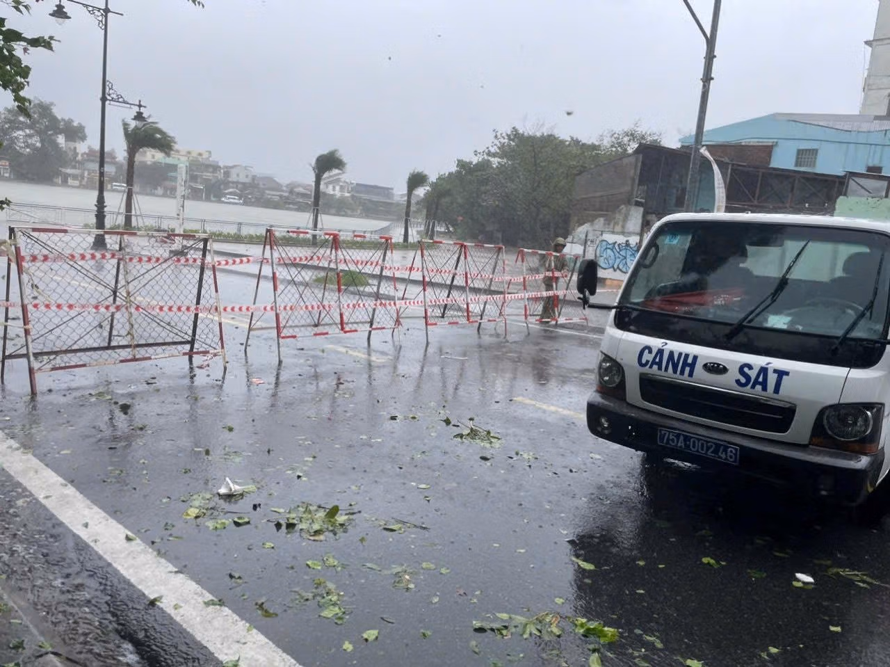 Do ảnh hưởng của bão số 6, trên tuyến đèo Hải Vân có mưa to, gió lớn, cây cối ngã đổ nhiều chắn ngang đường. Lực lượng chức năng phối hợp với các đơn vị liên quan chốt chặn dưới chân đèo Hải Vân không cho người và các phương tiện tham gia giao thông qua tuyến đèo.