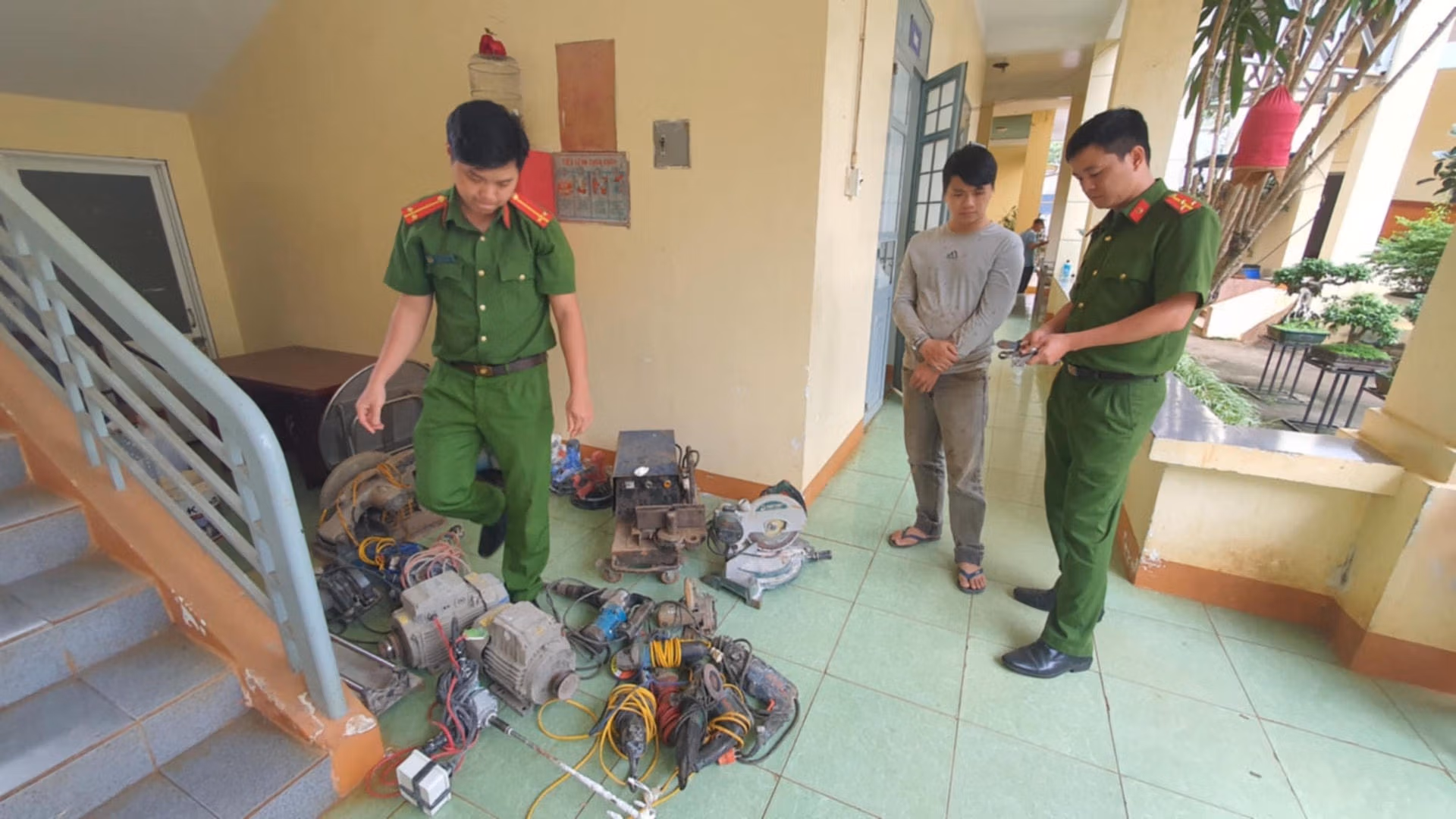 Sau khi phát hiện các công trình xây dựng, Giang sẽ dừng xe từ xa rồi vào vai lao công quét rác để quan sát, theo dõi. Khi thời cơ thuận lợi, Giang sẽ dùng kìm phá khóa, đột nhập trộm cắp. Với thủ đoạn đó, từ ngày 25/9 đến ngày 23/11, Giang đã thực hiện trót lọt 7 vụ đột nhập, trộm cắp nhiều phương tiện, máy móc có giá trị rồi đem bán cho một cơ sở thu mua phế liệu lấy tiền mua ma túy.