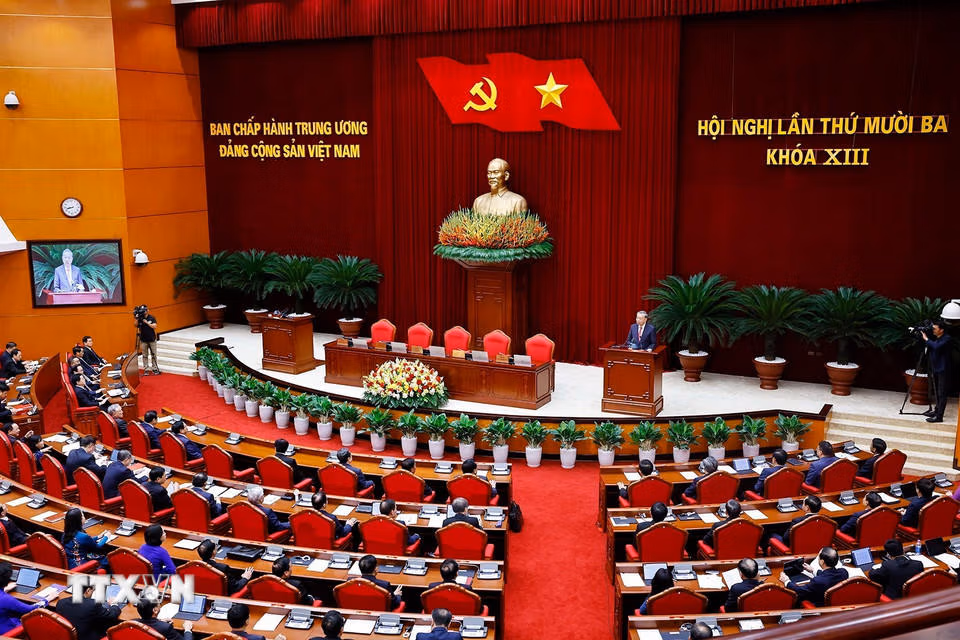 Phiên bế mạc Hội nghị lần thứ 13 Ban Chấp hành Trung ương Đảng khóa XIII. (Ảnh: Doãn Tấn/TTXVN)