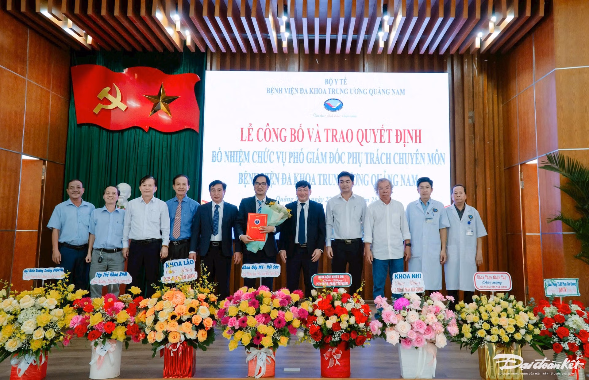 Tại buổi lễ, thừa ủy quyền của Bộ trưởng Bộ Y tế, TS.BS Nguyễn Hồng Sơn, Ủy viên Ban cán sự Đảng, Vụ trưởng Vụ Tổ chức cán bộ, Bộ Y tế đã trao Quyết định số 3066/QĐ-BYT, ngày 17/10 của Bộ Y tế về việc bổ nhiệm TS.BS Phan Tấn Quang, Trưởng phòng Kế hoạch tổng hợp kiêm Trưởng khoa Nội tim mạch, BVĐK TƯ Quảng Nam giữ chức vụ Phó Giám đốc chuyên môn BVĐK TƯ Quảng Nam.