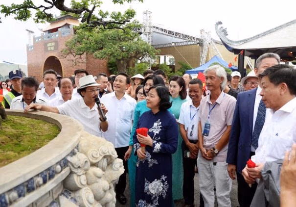 Sáng 1/9, Đoàn đại biểu Thành ủy, HĐND, UBND, Ủy ban Mặt trận Tổ quốc Việt Nam TP Hà Nội do bà Bùi Thị Minh Hoài, Ủy viên Bộ Chính trị, Bí thư Thành ủy, Trưởng đoàn đại biểu Quốc hội TP Hà Nội dẫn đầu đã tới tham quan triển lãm “Thủ đô Hà Nội văn hiến, anh hùng - 80 năm hành trình cùng đất nước” và "Không gian Truyền thống và Sáng tạo Hà Nội 2025" tại Trung tâm Triển lãm Quốc gia Việt Nam (VEC, xã Đông Anh, Hà Nội).