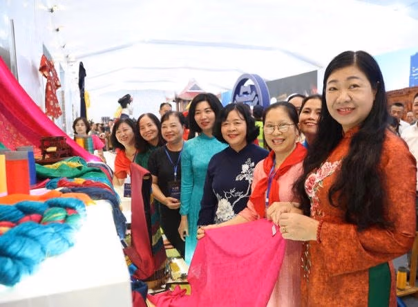 Khu vực “Nét son Hà Nội” trưng bày các sản phẩm thủ công mỹ nghệ tinh xảo thuộc các làng nghề truyền thống như gốm sứ Bát Tràng, mây tre đan Phú Vinh, dát vàng Kiêu Kỵ, khảm trai Chuyên Mỹ, đúc đồng Ngũ Xã, nón làng Chuông, quạt làng Vác… Mỗi sản phẩm là kết tinh của tài hoa và tâm huyết nghệ nhân, đồng thời là chứng nhân cho bản lĩnh sáng tạo bền bỉ của người Hà Nội.