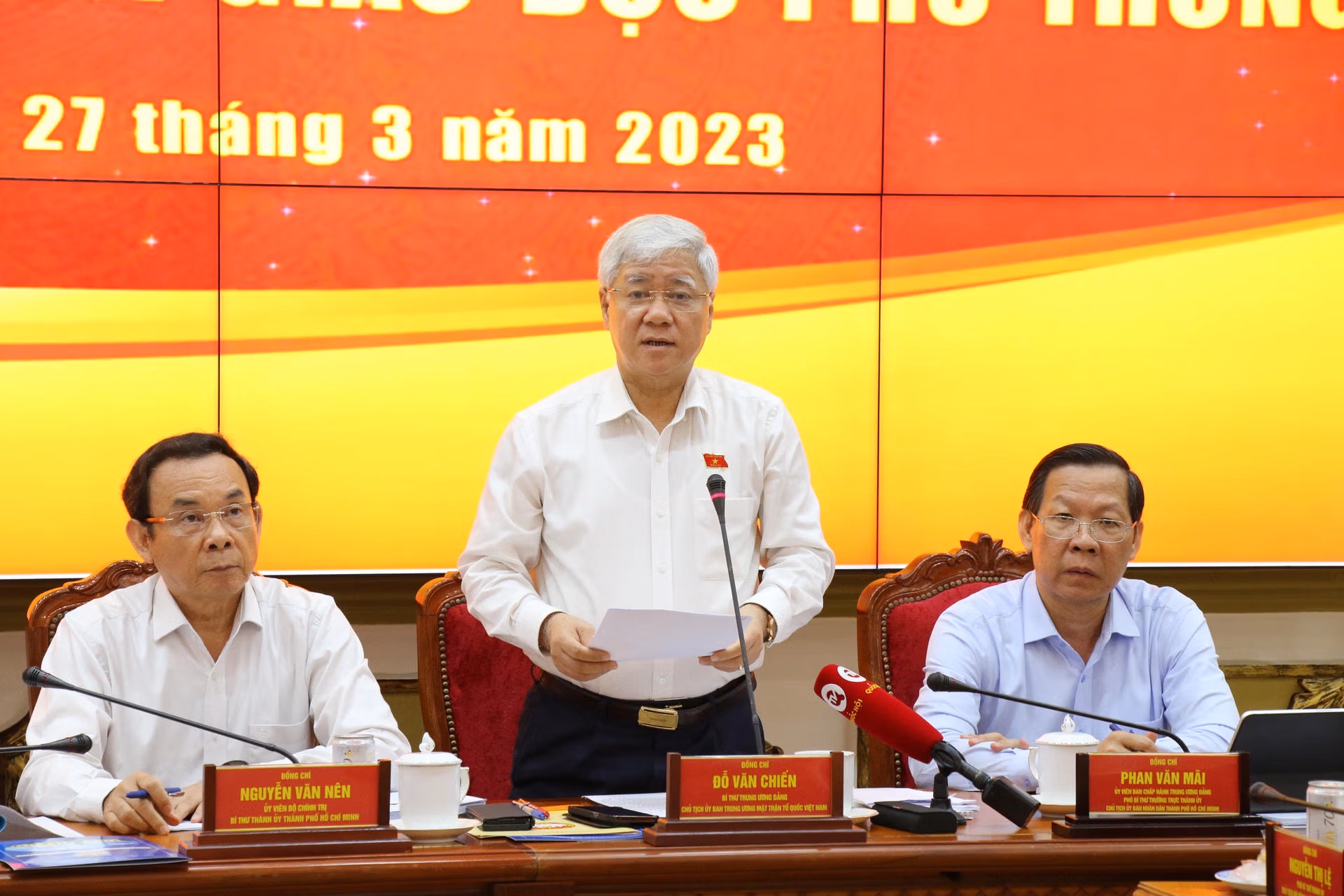 Bên cạnh đó, Chủ tịch UBTƯ MTTQ Việt Nam cũng đặt ra một số vấn để lãnh đạo TP HCM giải quyết, chẳng hạn như: Thành phố đánh giá các mục tiêu đạt ở mức độ nào? Thực tiễn việc thực hiện các nội dung đề ra như thế nào tại thành phố?