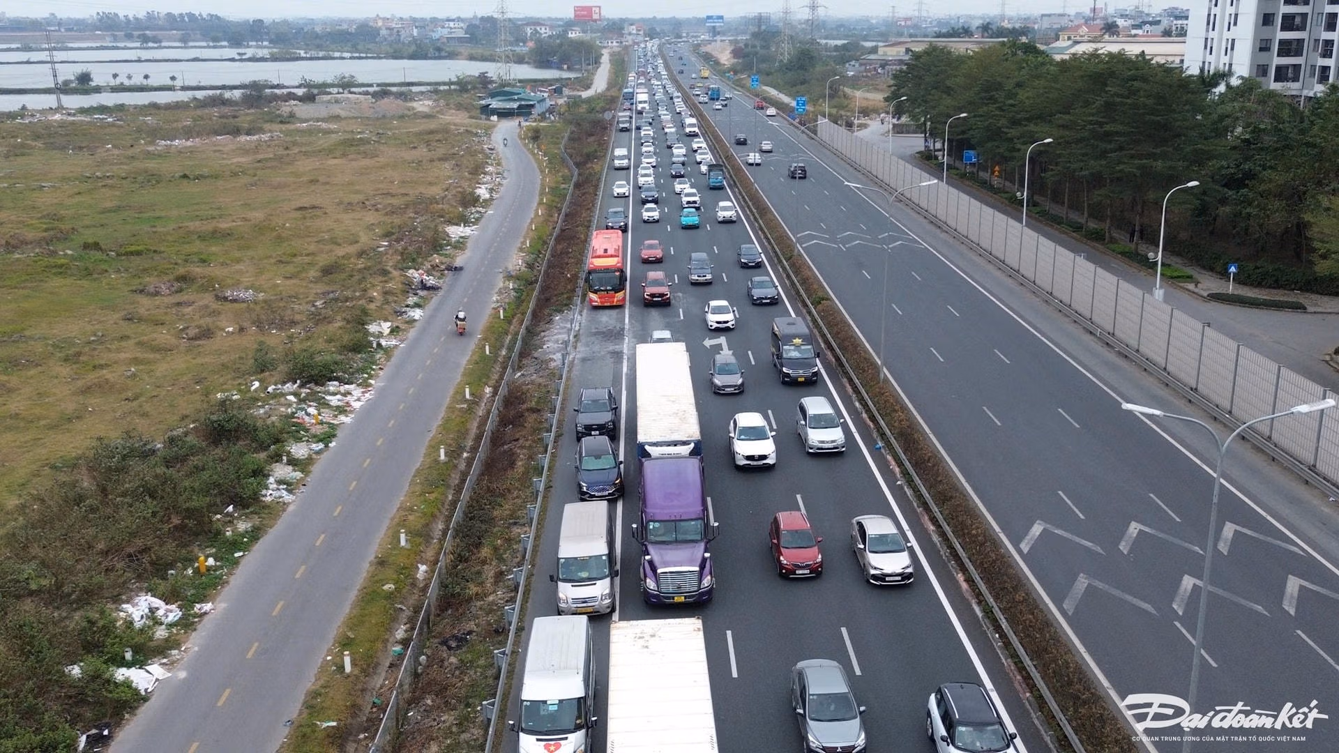 Biển người trở về Thủ đô sau kỳ nghỉ Tết: Đường phố ùn tắc kéo dài Chủ Nhật 02/02/2025 17:44 (GMT+7) Chiều 2/2 (mùng 5 Tết) là ngày nghỉ cuối cùng của kỳ nghỉ Tết kéo dài 9 ngày, vì vậy lưu lượng phương tiện dồn về cửa ngõ thành phố Hà Nội tăng đột biến, cửa ngõ ùn tắc kéo dài. Video người dân quay trở lại Hà Nội sau kỳ nghỉ Tết Nguyên đán.Theo ghi nhận của PV Báo Đại Đoàn Kết, 16h chiều ngày 2/2 lưu lượng phương tiện dồn về điểm cuối cao tốc Pháp Vân - Cầu Giẽ (đoạn qua quận Hoàng Mai, Hà Nội) gia tăng đột biến, các phương tiện di chuyển khó khăn.Dòng ô tô xếp hàng trên cao tốc Pháp Vân - Cầu Giẽ để vào trung tâm thành phố Hà Nội kéo dài khoảng 3km.Hàng dài phương tiện "ken đặc" trên đường Đỗ Mười.Tại tuyến đường Nguyễn Xiển lưu lượng phương tiện cũng tăng mạnh vào chiều ngày 2/2.Ùn tắc kéo dài, nhiều thời điểm các phương tiện "chôn chân" không thể di chuyển.Xe máy, len lỏi vượt qua đoạn đường ùn tắc.Người dân lỉnh kỉnh đồ đạc quay trở lại Hà Nội.Đường tắc, khiến việc di chuyển của người dân gặp nhiều khó khăn.Nhiều em nhỏ mệt mỏi sau quãng đường dài trở lại Hà Nội.Đại tá Trần Đình Nghĩa, Trưởng phòng CSGT cho biết, dự báo lượng phương tiện tăng cao, đơn vị đã triển khai lực lượng tại các trục chính như Pháp Vân - Cầu Giẽ, Quốc lộ 1A, cầu Thanh Trì, vành đai 3, khu vực bến xe, nhà ga. Các Đội CSGT số 5, số 6, số 7, số 14 trực tiếp kiểm soát luồng phương tiện phía Đông và Nam; Đội số 11, số 12 phối hợp Công an huyện, thị xã bảo đảm giao thông phía Tây. Lực lượng chỉ huy điều khiển giao thông cùng các tổ tuần tra kiểm soát duy trì quân số tối đa, không để xảy ra ùn tắc kéo dài, tai nạn nghiêm trọng. Phòng CSGT phối hợp với Cục CSGT - Bộ Công an tổ chức phân luồng từ xa trên các tuyến cao tốc, quốc lộ hướng vào Hà Nội. Lê Khánh