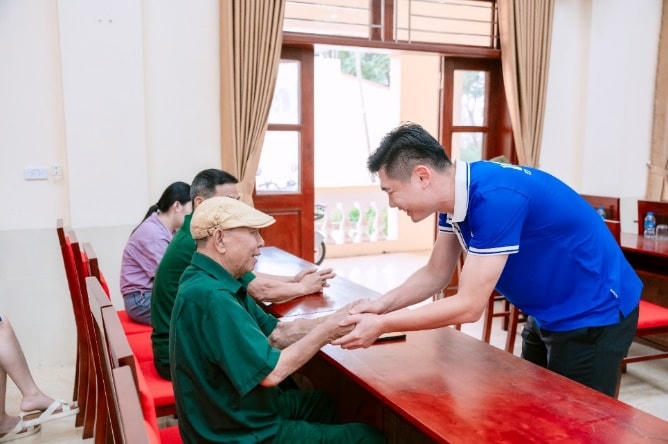 Nắm tay các chú, thăm hỏi, động viên – anh Ngọc Anh, đại diện đoàn công tác của Vinamilk (Chi nhánh Hà Nội) chia sẻ đầy cảm xúc: “Những bàn tay này từng ôm chặt súng, những bước chân mạnh mẽ không run sợ trước quân thù. Giờ đây tuy sức khỏe giảm sút nhiều, nhưng các bác nói về tinh thần chiến đấu, chiến thắng vẫn hừng hực khí thế. Mong rằng các bác, các chú sẽ luôn cảm nhận được thế hệ sau vẫn mãi ghi nhớ những hi sinh, mất mát của các cô chú vì hòa bình hôm nay!”