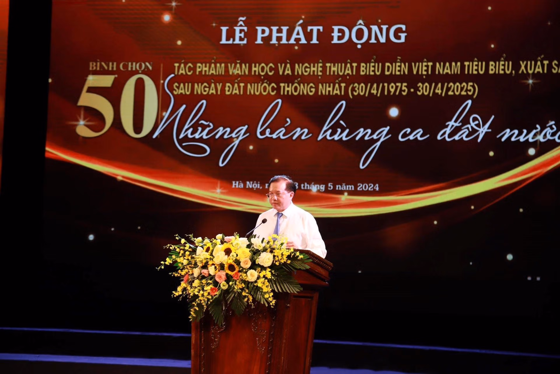 Nhân kỷ niệm 134 năm Ngày sinh Chủ tịch Hồ Chí Minh; hướng tới kỷ niệm 50 năm Ngày Giải phóng miền Nam, tối ngày 18/5, tại Nhà hát Lớn Hà Nội, Bộ Văn hóa, Thể thao và Du lịch đã tổ chức Lễ phát động bình chọn 50 tác phẩm văn học, nghệ thuật biểu diễn Việt Nam tiêu biểu, xuất sắc sau ngày đất nước thống nhất với chủ đề “Những bản hùng ca đất nước”.