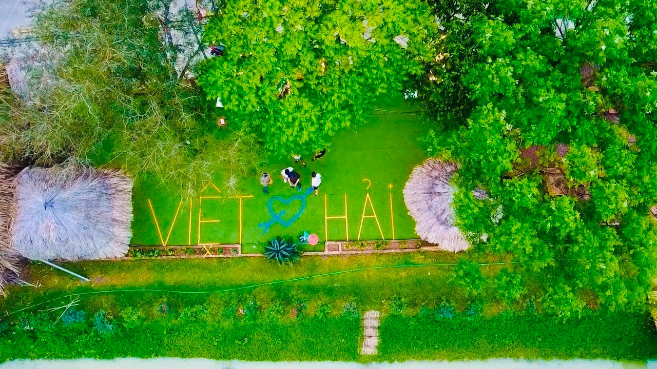 Tại làng chài Việt Hải, khung cảnh thiên nhiên hiện lên như một bức tranh sơn thủy hữu tình. Nơi đây vẫn còn có những ngôi nhà được lợp từ mái rạ, vách nhà được xây dựng bằng đất hay gỗ và những căn bếp nấu bằng củi, những cánh đồng cỏ thênh thang.