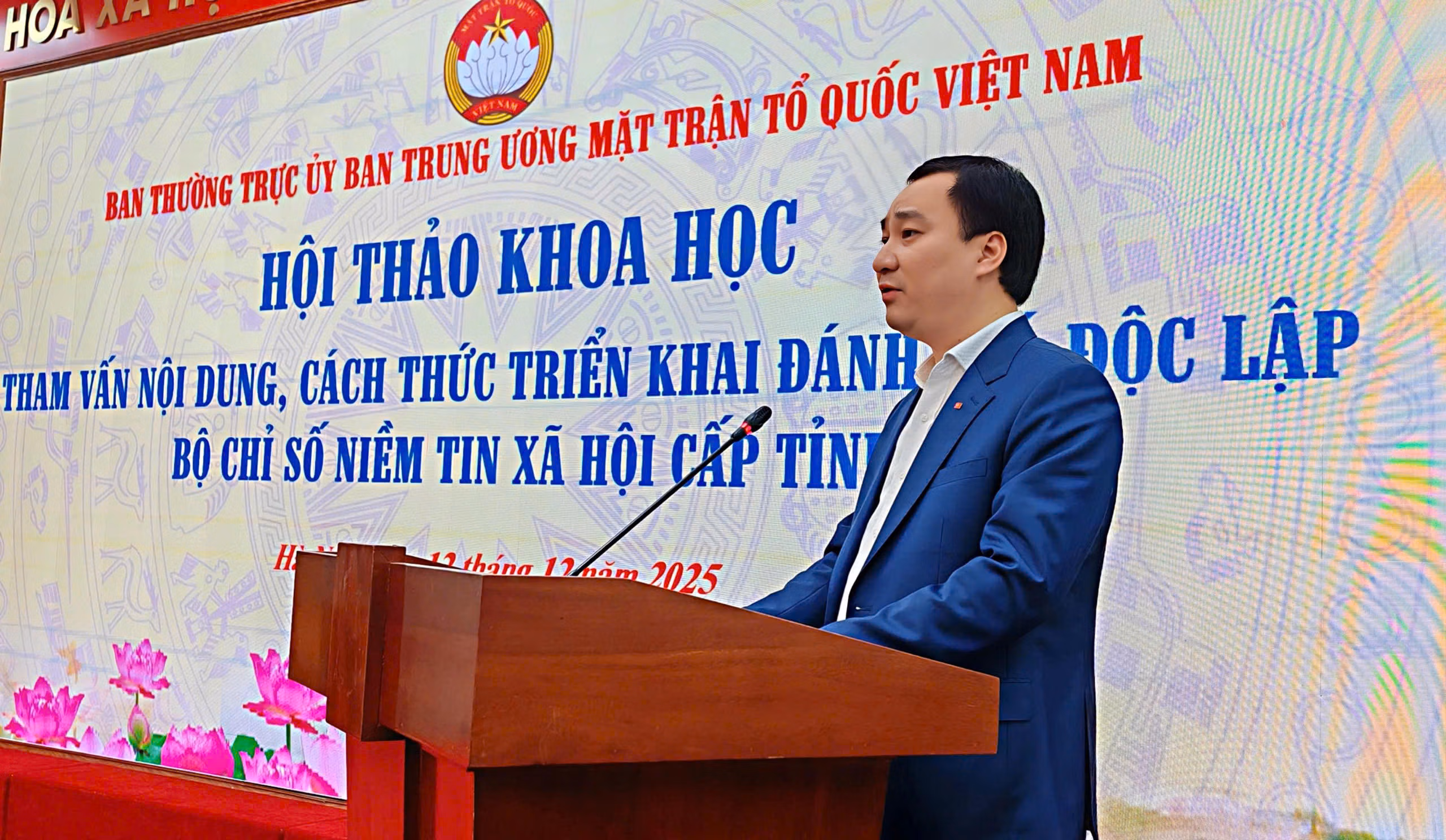 Thực hiện ý kiến chỉ đạo của Tổng Bí thư Tô Lâm tại Đại hội Đảng bộ Mặt trận Tổ quốc, các đoàn thể Trung ương lần thứ I, nhiệm kỳ 2025-2030 về việc giao Ủy ban Trung ương Mặt trận Tổ quốc Việt Nam đánh giá độc lập Bộ chỉ số niềm tin xã hội cấp tỉnh, ngày 12/12, Ban Thường trực UBTƯ MTTQ Việt Nam tổ chức Hội thảo khoa học tham vấn nội dung, cách thức triển khai đánh giá độc lập bộ Bộ chỉ số niềm tin xã hội cấp tỉnh.