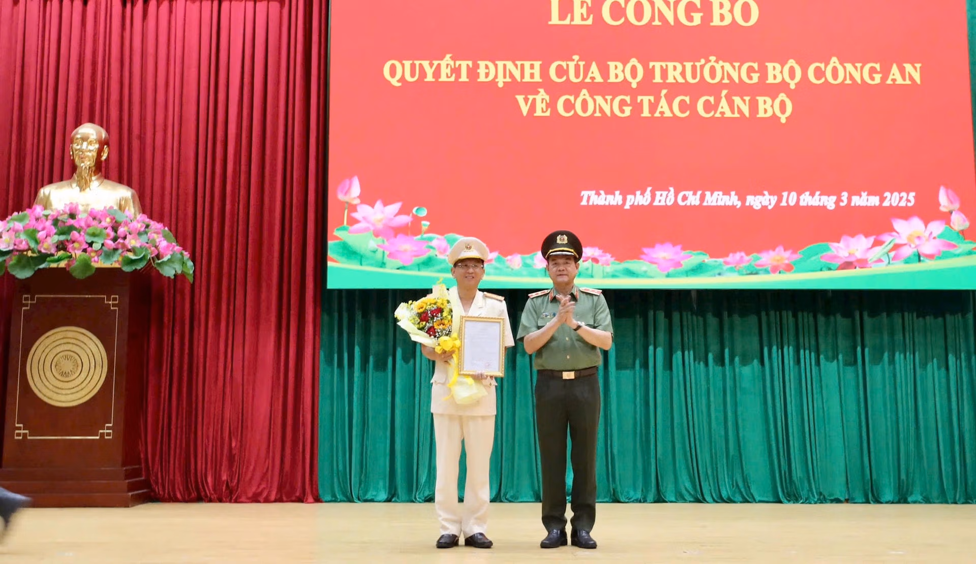 Tại Lễ công bố, lãnh đạo Phòng Tổ chức cán bộ - Công an TP Hồ Chí Minh đã công bố Quyết định của Bộ trưởng Bộ Công an về việc điều động, bổ nhiệm Đại tá Trần Hồng Minh - Phó Giám đốc Công an tỉnh Trà Vinh đến nhận công tác và giữ chức vụ Phó Giám đốc Công an TP Hồ Chí Minh.