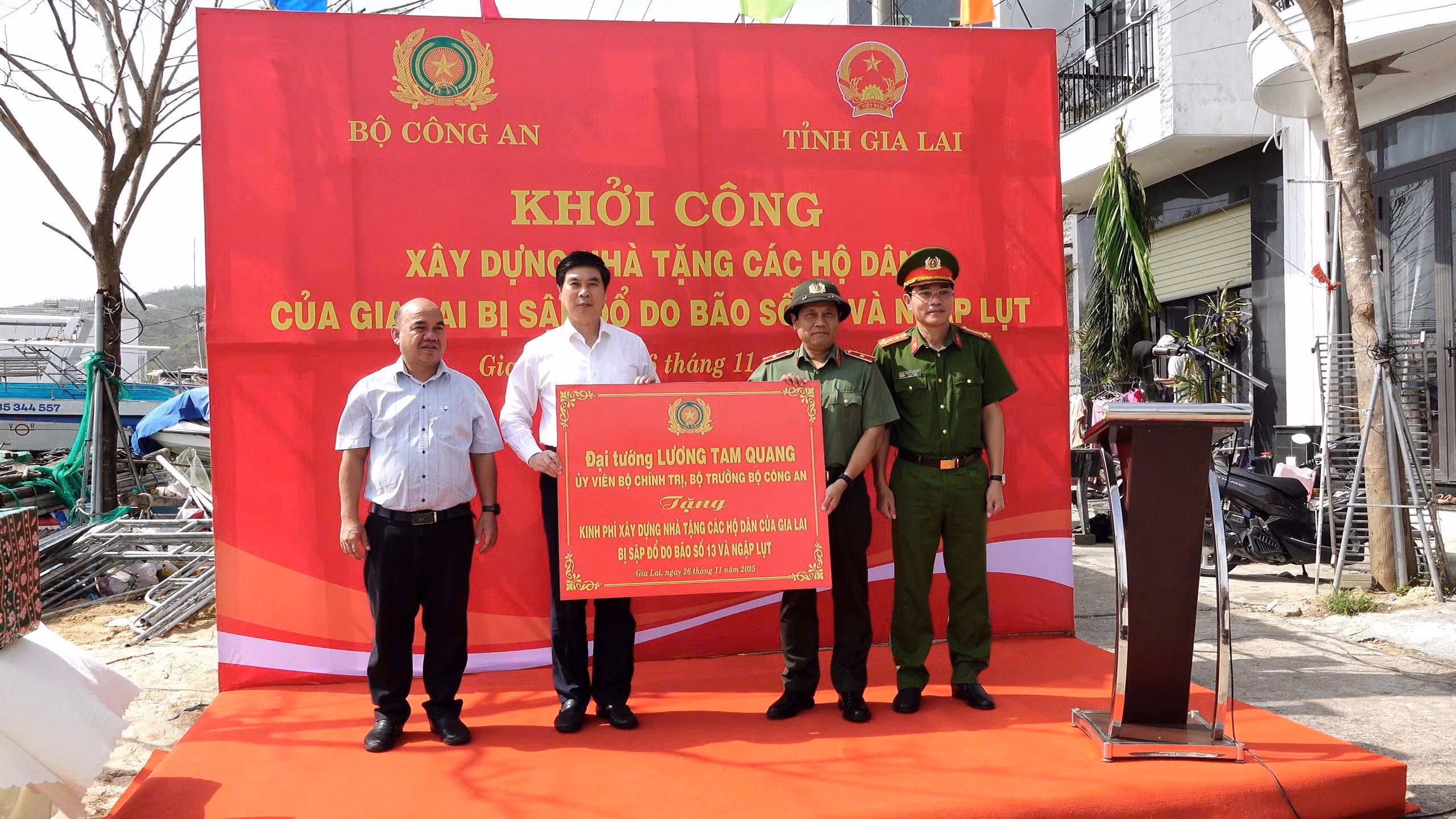 Ngày 26/11, tại phường Quy Nhơn Đông, tỉnh Gia Lai, Bộ Công an tổ chức Lễ khởi công xây dựng nhà tặng các hộ dân của Gia Lai bị sập đổ do bão số 13 và ngập lụt.