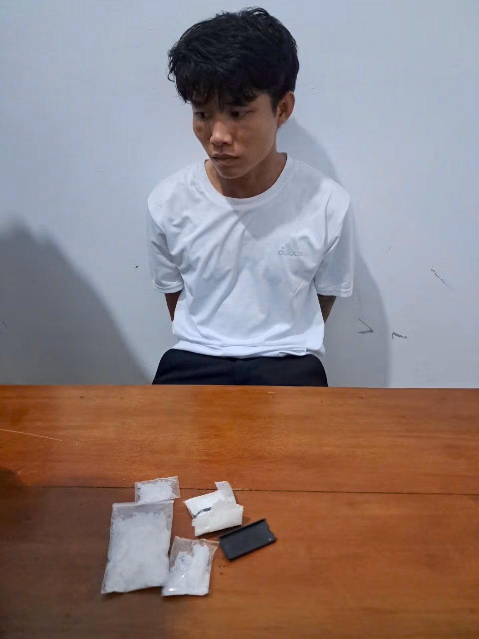 Lực lượng Biên phòng xác định, có nhiều tang vật tại hiện trường, bao gồm: 4 gói ni lông màu trắng được hàn kín bên trong có chứa chất kết tinh không màu, trong suốt có trọng lượng khoảng 50 gram là ma túy tổng hợp dạng đá.