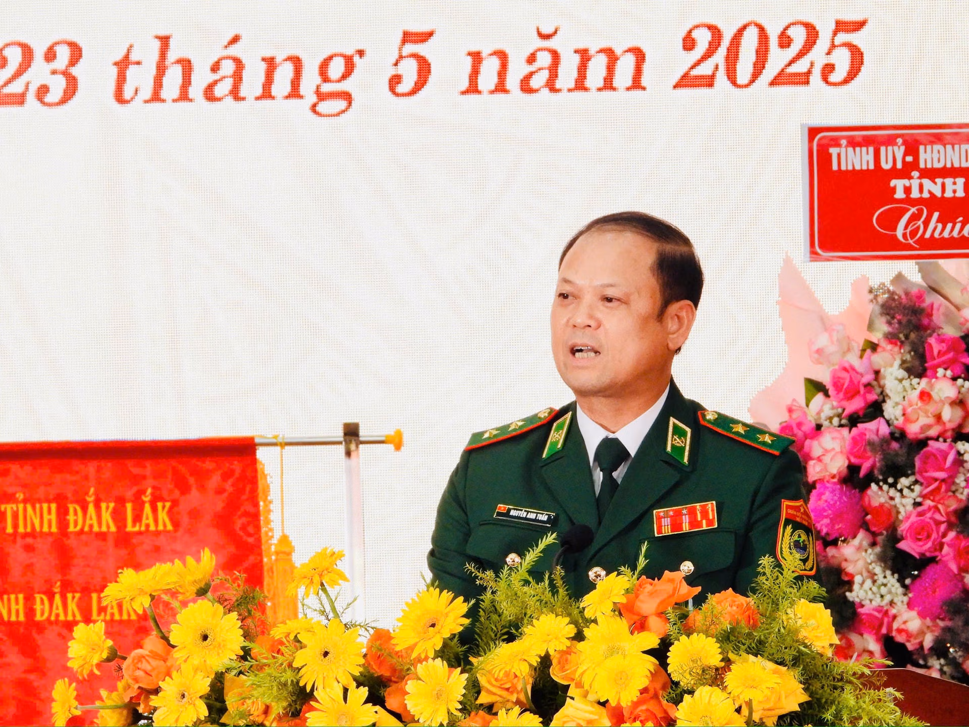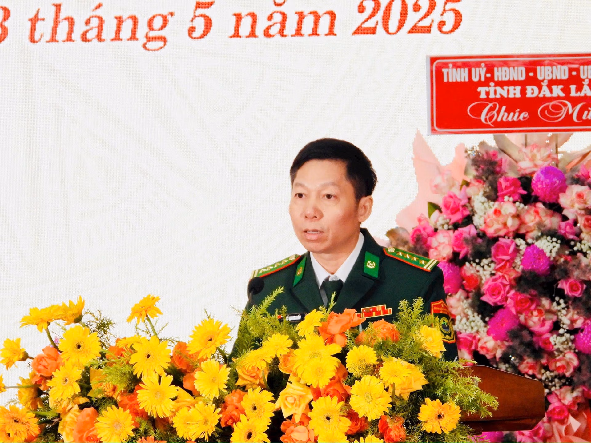 Ông Trương Công Thái, Tỉnh ủy viên, Phó Chủ tịch UBND tỉnh Đắk Lắk nhấn mạnh: "Hôm nay, tôi và các đồng chí lãnh đạo tỉnh rất vui mừng, phấn khởi tới dự Lễ kỷ niệm 50 năm Ngày truyền thống BĐBP tỉnh Đắk Lắk (23/5/1975 - 23/5/2025). Thay mặt Thường trực Tỉnh ủy, HĐND, UBND, UBMTTQ Việt Nam tỉnh, Tôi gửi đến các đồng chí đại biểu tham dự Lễ kỷ niệm và cán bộ, chiến sĩ BĐBP tỉnh những tình cảm thân thiết và lời chúc mừng tốt đẹp nhất. “Kỷ niệm 50 năm Ngày truyền thống BĐBP tỉnh là dịp để chúng ta nhận thức sâu sắc hơn nữa vị trí, vai trò của công tác Biên phòng trong sự nghiệp xây dựng và bảo vệ Tổ quốc; thấy rõ hơn nữa công lao to lớn và truyền thống vẻ vang của lực lượng Công an nhân dân vũ trang - BĐBP tỉnh Đắk Lắk trong suốt chặng đường 50 năm qua. Đồng thời, có quyết tâm cao hơn nữa trong việc thực hiện chủ trương, đường lối của Ðảng, chính sách của Nhà nước về xây dựng nền Biên phòng toàn dân, gắn với thế trận Biên phòng toàn dân, huy động có hiệu quả sức mạnh tổng hợp của các cấp, các ngành và các tầng lớp Nhân dân trong sự nghiệp xây dựng, quản lý và bảo vệ biên giới quốc gia”.
