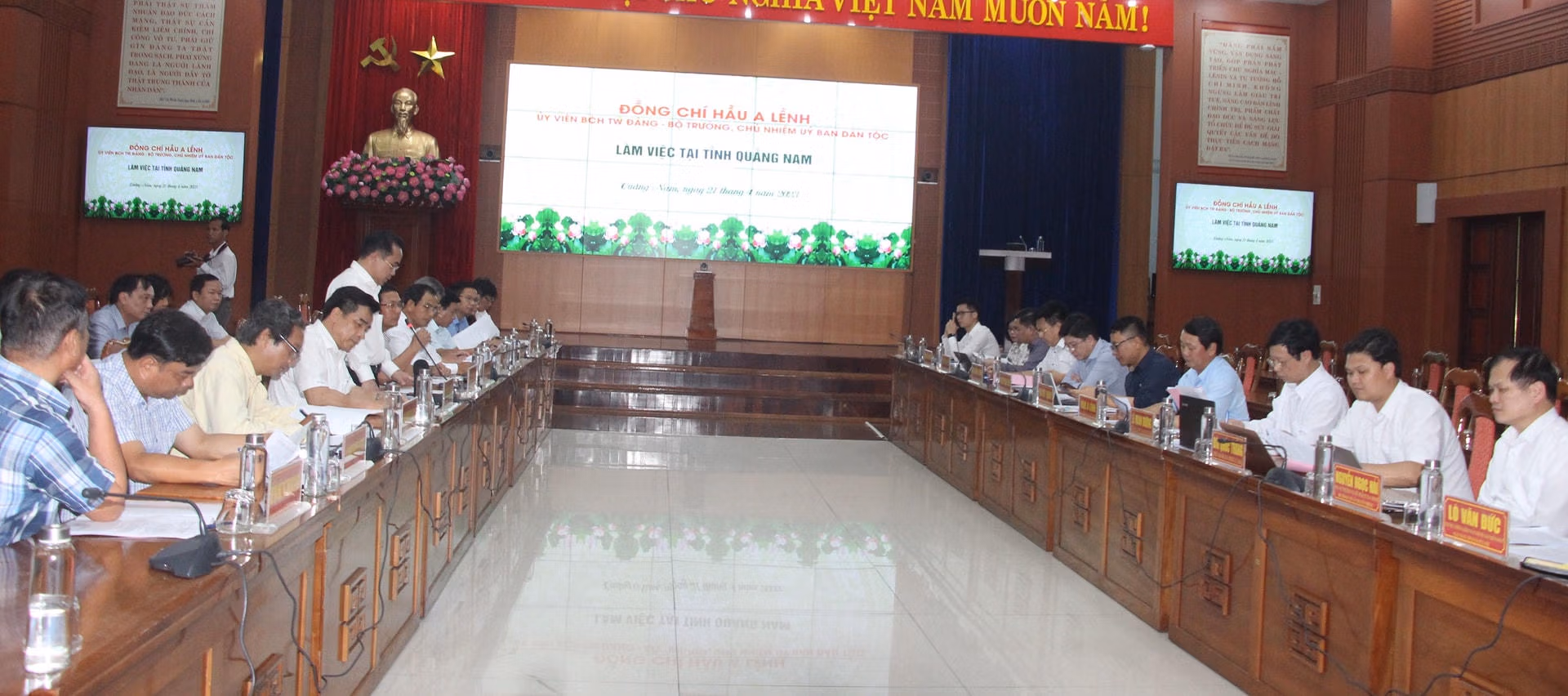 Sáng 21/4, Đoàn công tác của Ủy ban Dân tộc do ông Hầu A Lềnh, Ủy viên Ban chấp hành Trung ương Đảng, Bộ trưởng, Chủ nhiệm Ủy ban Dân tộc làm Trưởng đoàn đã có buổi làm việc với tỉnh Quảng Nam về kết quả thực hiện Chương trình mục tiêu quốc gia phát triển kinh tế-xã hội vùng đồng bào dân tộc thiểu số (DTTS) và miền núi.