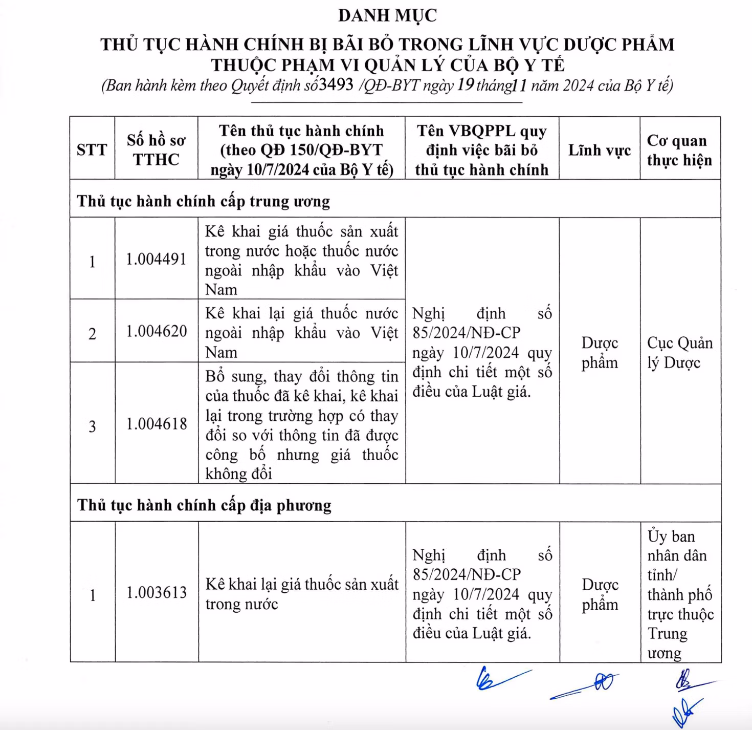 Cụ thể, Bộ Y tế bãi bỏ 4 thủ tục hành chính trong lĩnh vực dược phẩm, trong đó có 3 thủ tục hành chính cấp Trung ương (Cục Quản lý Dược - Bộ Y tế) và 1 thủ tục hành chính cấp địa phương (UBND tỉnh, thành phố) bao gồm: