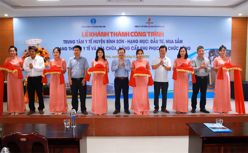 Thiết thực chào mừng kỷ niệm 35 năm ngày tái lập tỉnh Quảng Ngãi (01/7/1994 - 01/7/2024), ngày 26/6/2024, Công ty cổ phần Lọc hóa dầu Bình Sơn (BSR) phối hợp với Trung tâm Y tế huyện Bình Sơn tổ chức Lễ khánh thành công trình: Đầu tư, mua sắm trang thiết bị y tế và sửa chữa nâng cấp khu phục hồi chức năng thuộc Trung tâm Y tế huyện Bình Sơn.