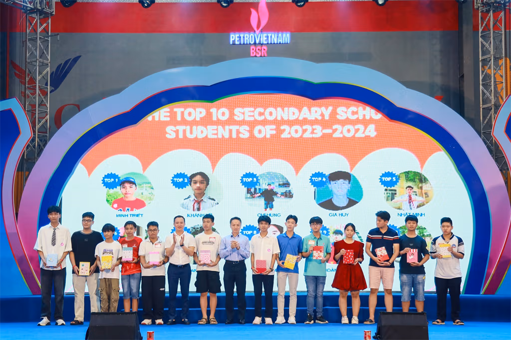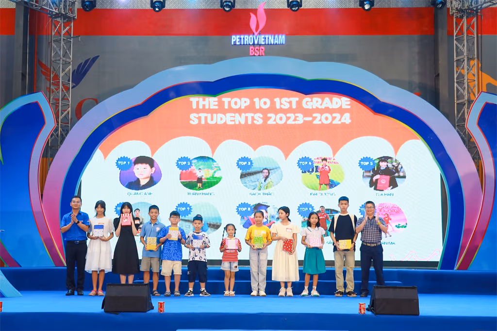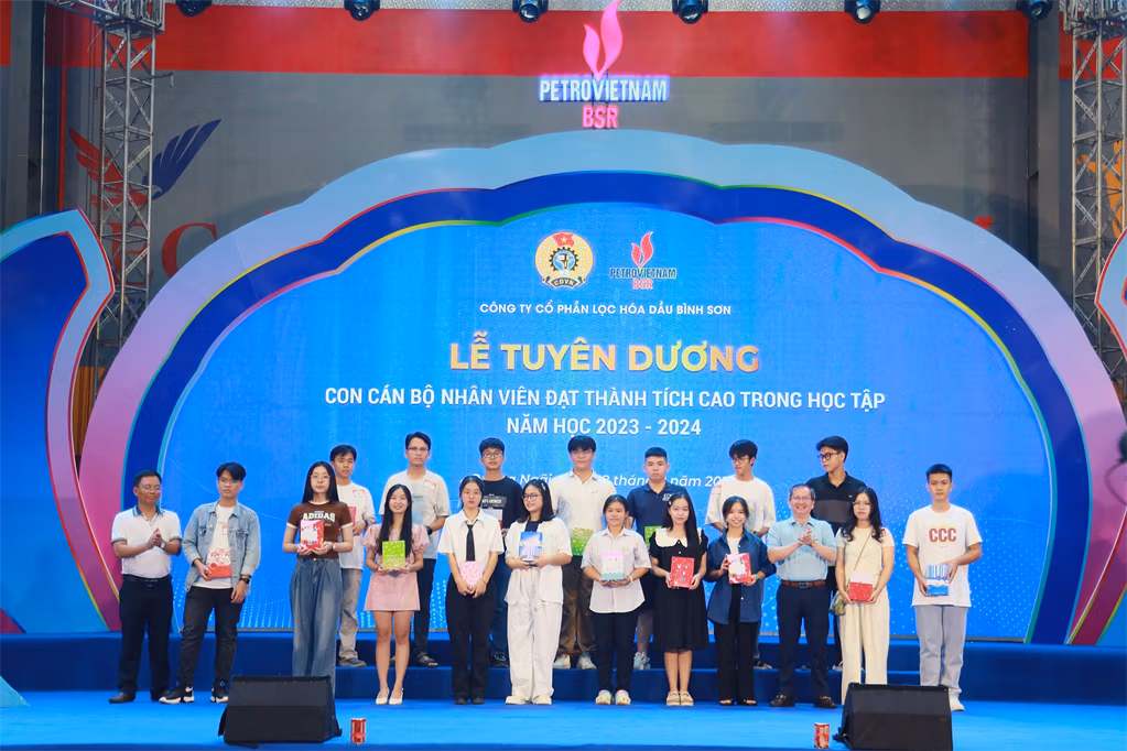 Cũng tại buổi lễ, Ban tổ chức cũng đã trao các phần quà nhằm khích lệ tinh thần học tập cho các em nhỏ con của CBCNV. Năm học 2023 - 2024, có hơn 1.510 em học sinh là con của CBCNV BSR đạt thành tích học sinh giỏi, học sinh khá và xuất sắc. Đặc biệt, nhiều em học sinh đạt danh hiệu học sinh giỏi cấp Quốc gia, cấp tỉnh Quảng Ngãi. Ngoài các môn học kiến thức, nhiều em còn đạt các giải cao trong các cuộc thi thể thao như bơi lội, cầu lông… và các cuộc thi về năng khiếu của tỉnh Quảng Ngãi.