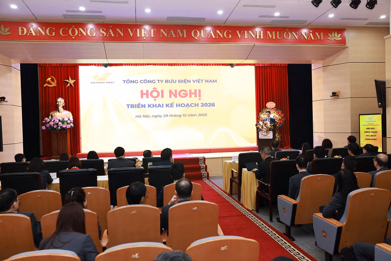 Ngày 29/12/2025, tại Hà Nội, Tổng công ty Bưu điện Việt Nam (Vietnam Post) tổ chức Hội nghị Triển khai kế hoạch năm 2026 theo hình thức trực tiếp kết hợp trực tuyến, kết nối đến các Bưu điện tỉnh, thành phố, trung tâm và đơn vị trực thuộc trên toàn mạng lưới.