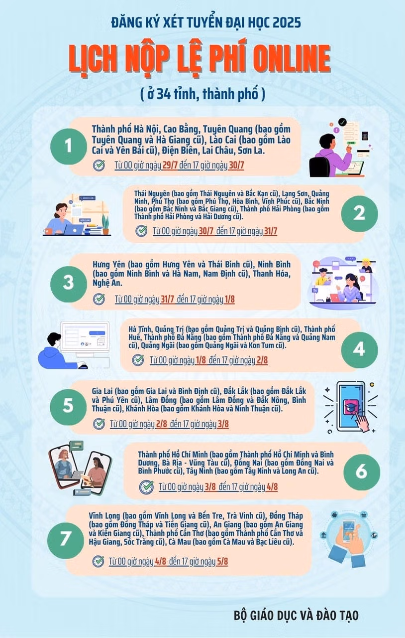 Lịch thanh toán lệ phí xét tuyển đại học, cao đẳng của thí sinh trên cả nước như sau: