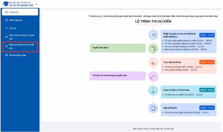 Bước 2: Tại màn hình chính, nhấn vào mục Đăng ký thông tin xét tuyển
