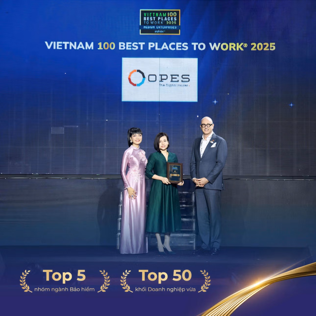 Nhờ chiến lược nhân sự kết hợp chặt chẽ với xây dựng văn hóa doanh nghiệp, OPES được xướng tên trên bảng xếp hạng "Top 50 nơi làm việc tốt nhất Việt Nam khối doanh nghiệp vừa" và "Top 5 nơi làm việc tốt nhất Việt Nam 2025 nhóm ngành bảo hiểm" của Anphabe, dựa trên kết quả khảo sát hơn 650 doanh nghiệp trong 18 ngành nghề, cùng hơn 78.000 người đi làm và sinh viên, đồng thời được Intage kiểm toán độc lập. Đây là minh chứng rõ ràng OPES đã và đang được công nhận là một môi trường nuôi dưỡng nhân tài và thu hút nhân sự trong ngành, đặc biệt là nguồn nhân sự tinh nhuệ, giỏi chuyên môn, thành thạo công nghệ, chủ động đổi mới sáng tạo - nhân tố thiết yếu để bắt kịp xu hướng bảo hiểm thế hệ mới.