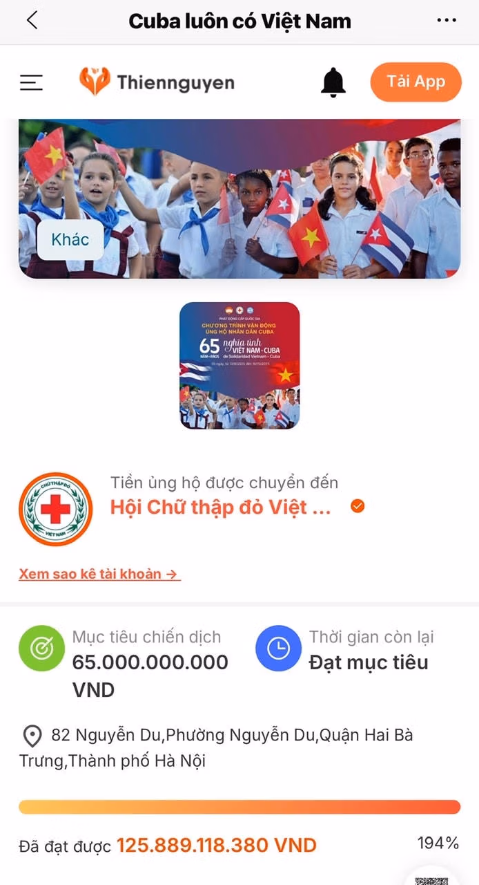 Toàn bộ số tiền ủng hộ Chương trình "65 năm nghĩa tình Việt Nam - Cuba" được cập nhật công khai, minh bạch trên trang https://thiennguyen.app