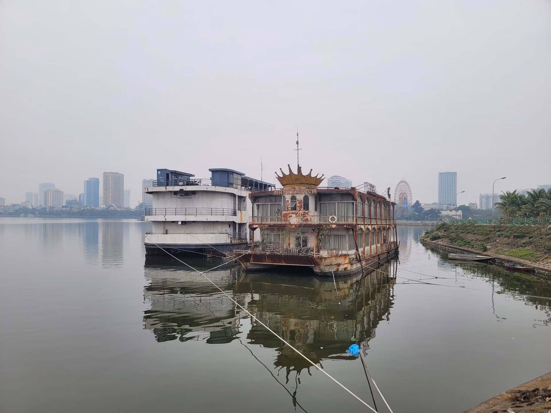 Ghi nhận của PV Báo Đại Đoàn Kết, 3 du thuyền và 1 sàn nổi được tập kết ở 2 vị trí cách nhau khoảng 500 m Hồ Tây. Những du thuyền tiền tỷ, là chỗ ăn chơi xa hoa của giới nhà giàu một thời, giờ lập lờ một góc, hoen rỉ, hoang tàn.